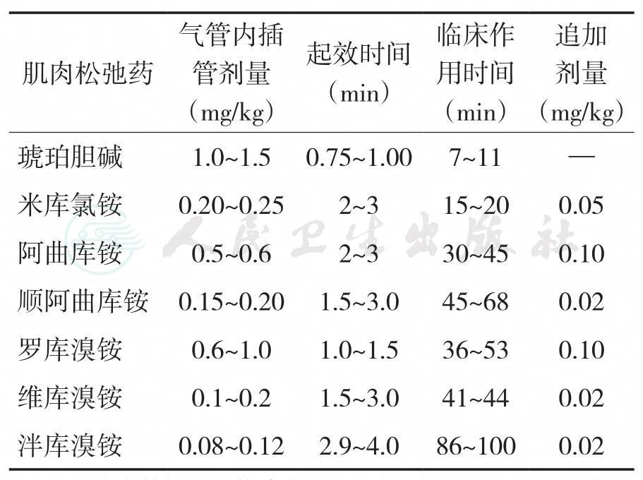 5.常用肌肉松弛药的ED95(肌颤搐被抑制95%的剂量)及插管剂量、起效时间和临床作用时间见附录中附表6-1和附表6-2。