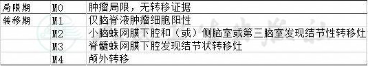 高危组:术后肿瘤残余≥1.5cm2;脑脊液肿瘤细胞学检查阳性,或头部或脊髓检查存在肿瘤播散证据,或颅外转移;病理组织学弥漫间变型。满足以上任一条件者,归为高危组。
