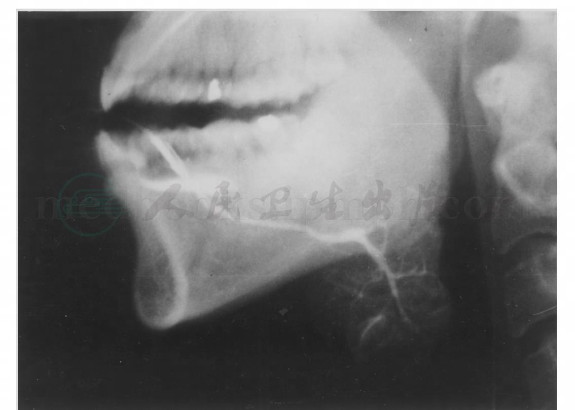 涎腺造影(sialography)是指将高密度造影剂通过涎腺导管注入至腺体内部,使其在X线平片上显影的一种影像成像方法。由于解剖上的原因(涎腺导管开口的单一性),涎腺造影一般只在腮腺和下颌下腺上进行。