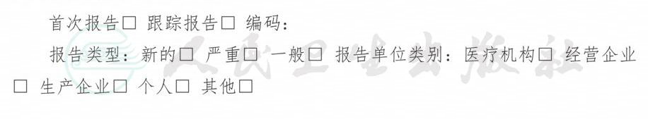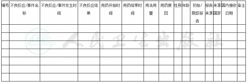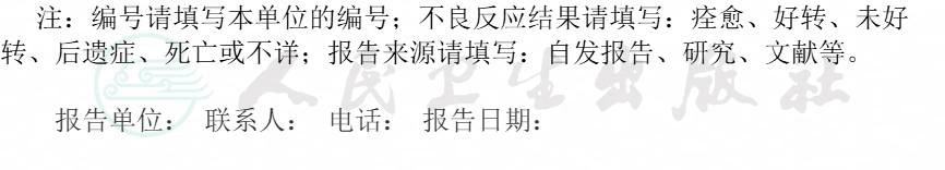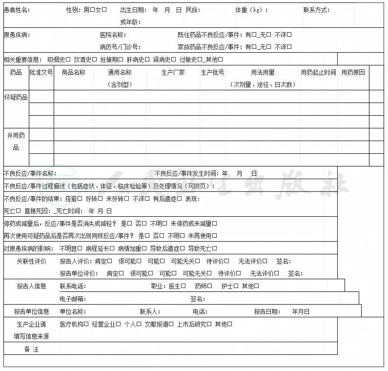 药品不良反应/事件报告表