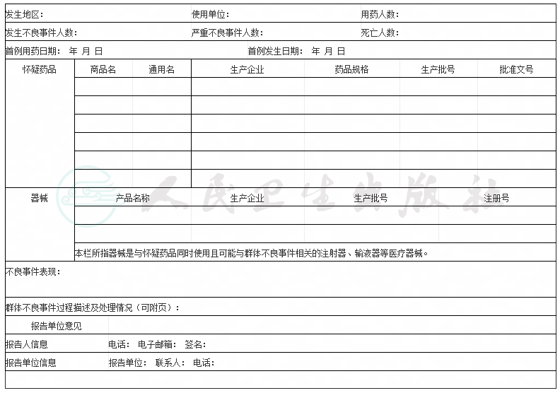 药品群体不良事件基本信息表