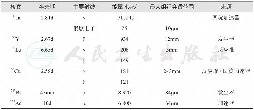 表1 可能适用于肽受体放射性核素治疗治疗的放射性核素