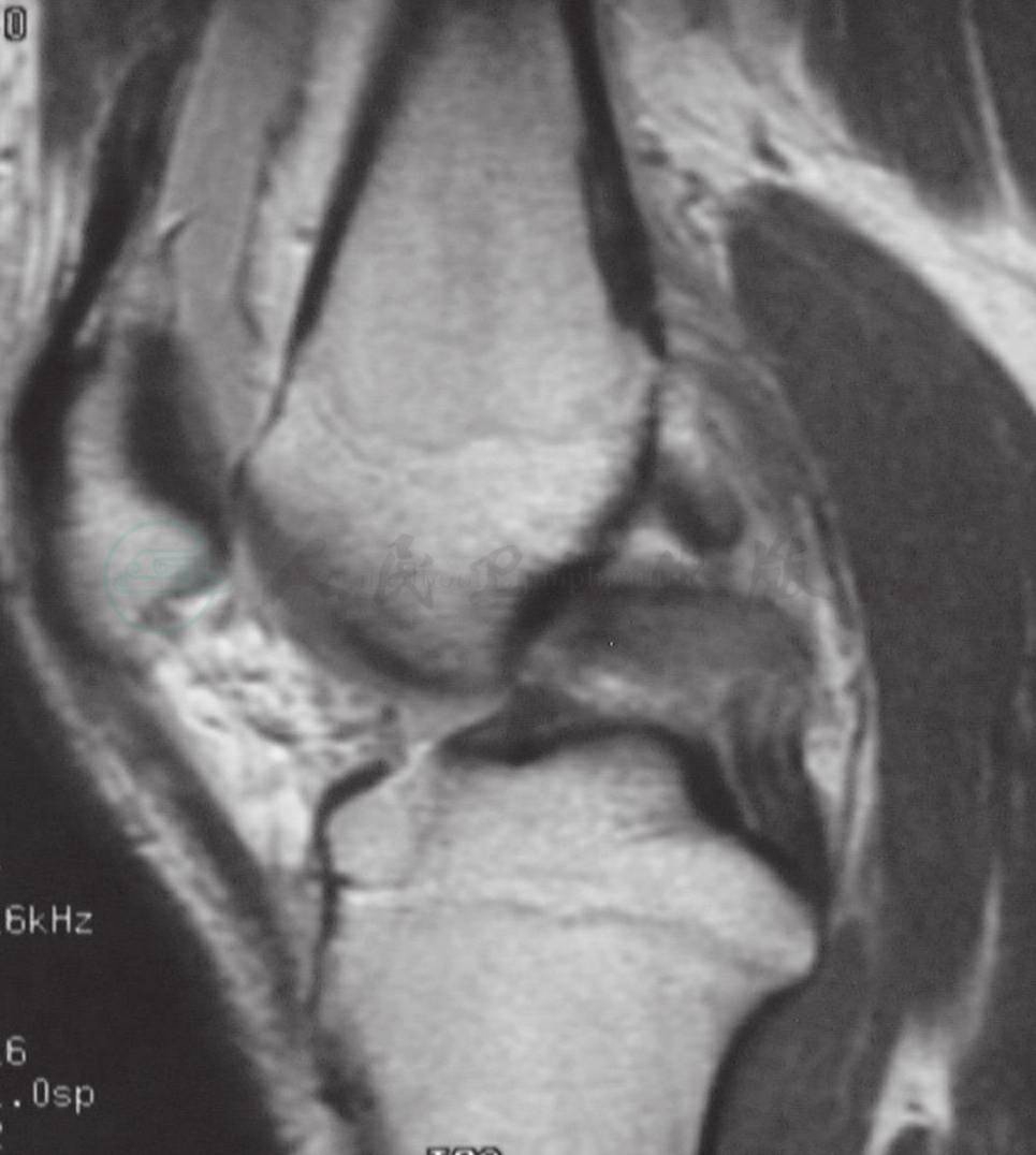后十字韧带的损伤率要低于前十字韧带,大约占到膝关节韧带损伤的3.4%~20%。后十字韧带是一条在关节内、滑膜外的韧带。平均长度是38mm,平均宽度是13mm。后十字韧带为前后走行,起于胫骨髁间隆突的后方,斜行止于股骨内髁部,附着点呈圆弧形,该韧带又可分为前、后两束,前外侧束较后内侧束强韧,横截面积也是后内侧束的两倍以上。两条外侧半月板股骨韧带(Humphry韧带在前,Wrisberg韧带在后)在后十字韧带的前后,起到限制胫骨后移的次要作用。