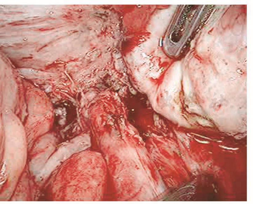 (4)合并严重盆、腹腔粘连无法置镜或镜下难以分离。