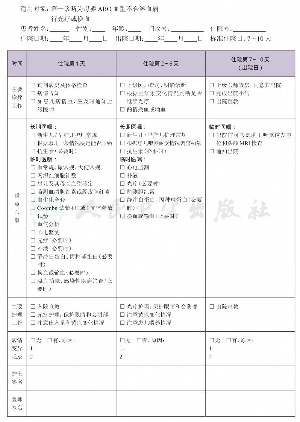 一、 母婴ABO血型不合溶血病临床路径标准住院流程