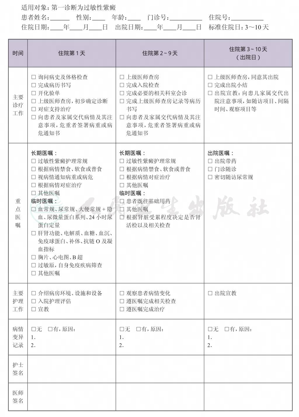 1.第一诊断必须符合过敏性紫癜疾病编码。