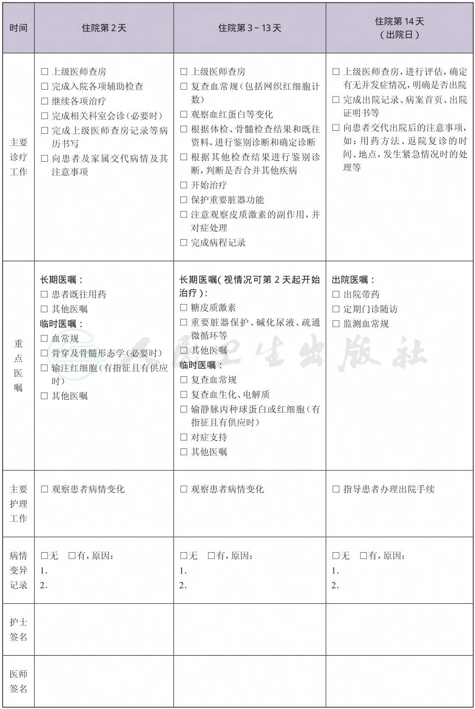 2.治疗过程中出现溶血危象或再生障碍危象,退出该路径。