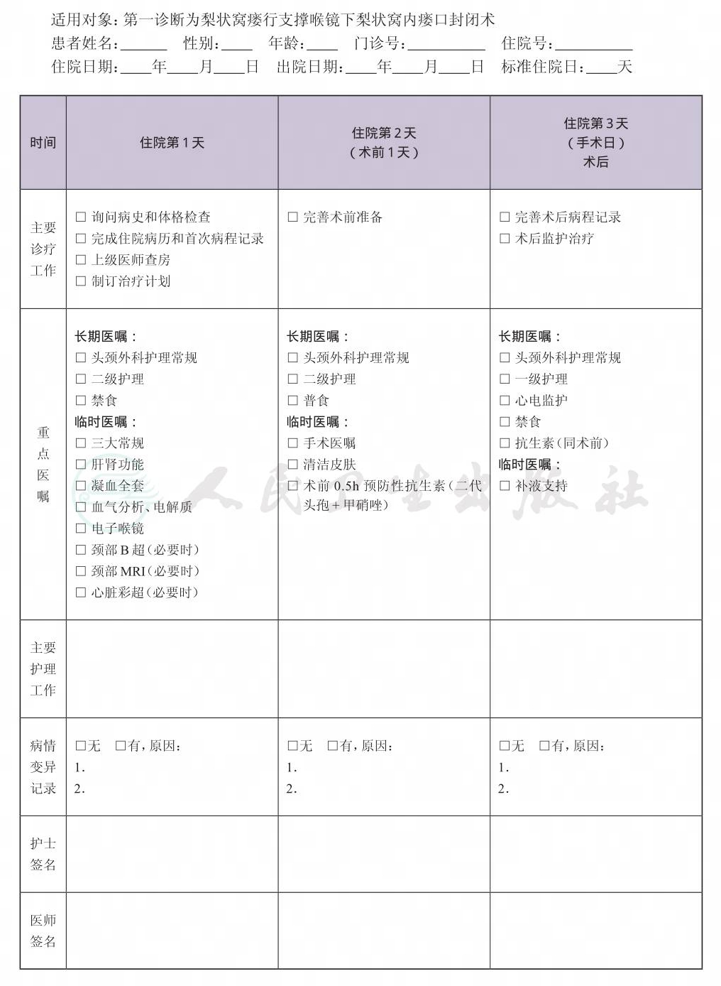 2.术中若未发现内瘘口,则改行颈侧入路梨状窝瘘切除术,视为变异因素不再使用本临床路径。