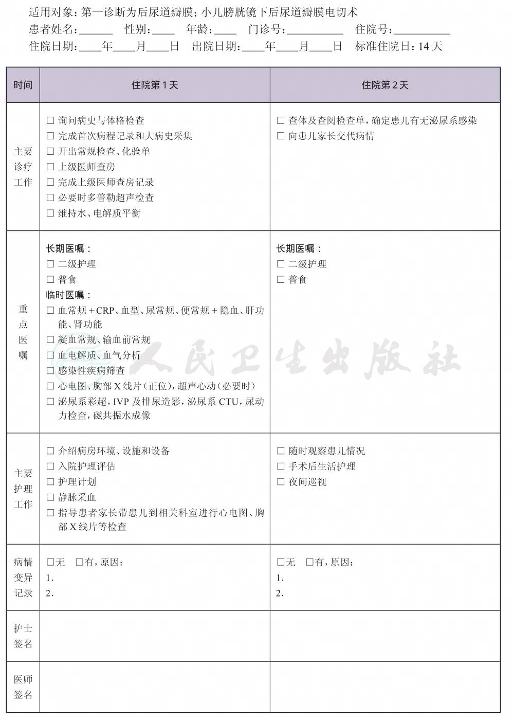 一、 后尿道瓣膜临床路径标准住院流程