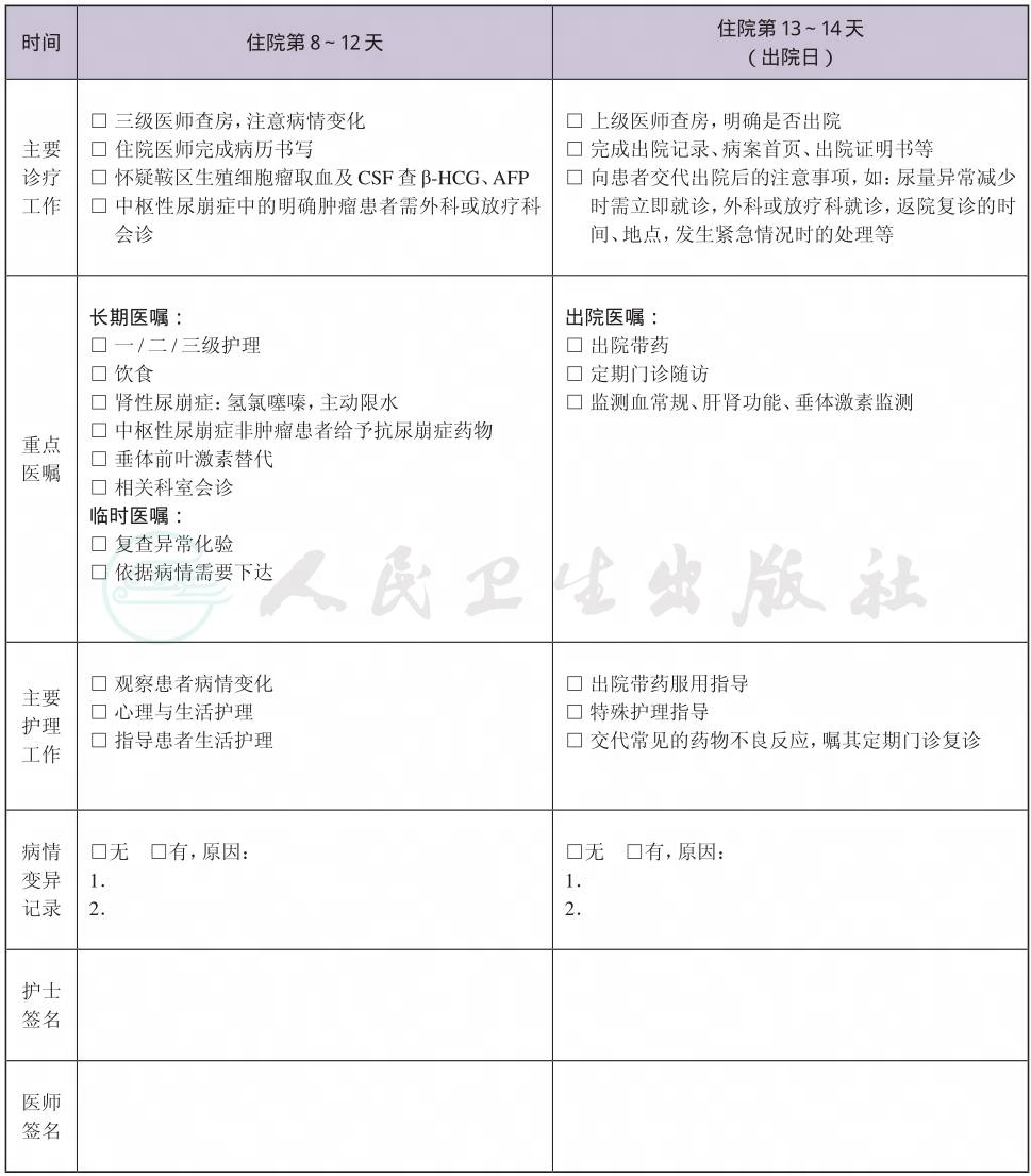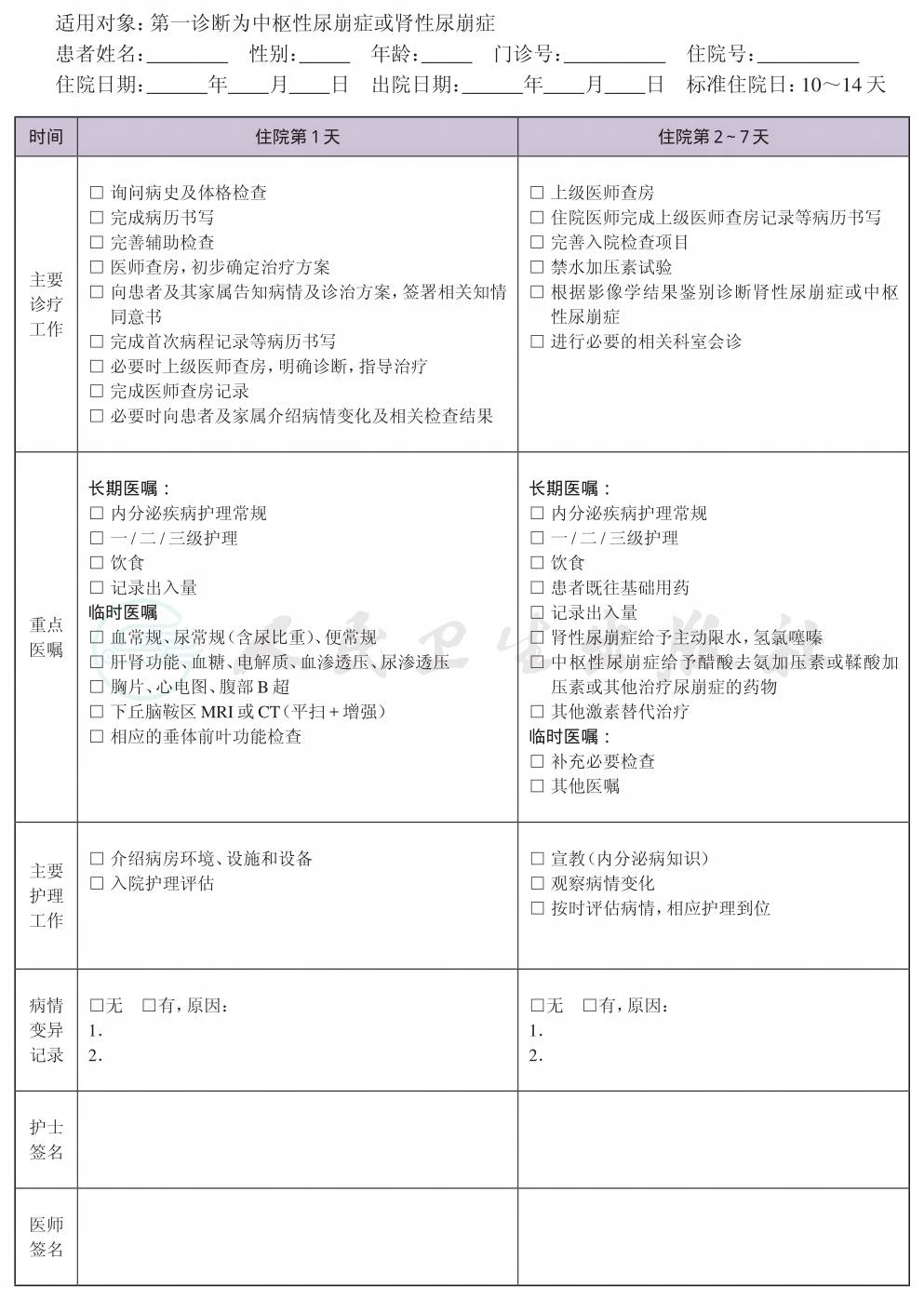 二、 尿崩症临床路径表单