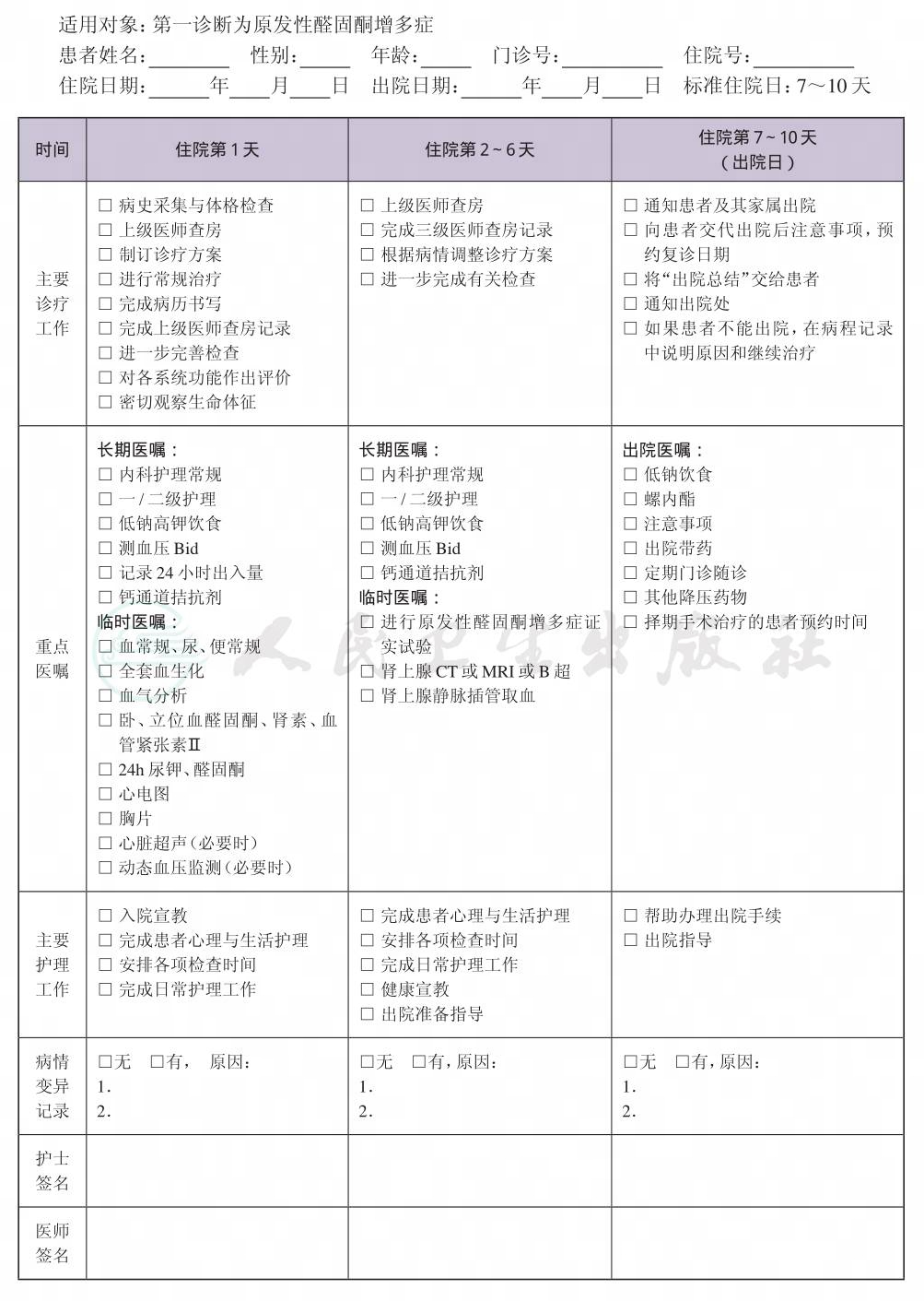 二、 原发性醛固酮增多症临床路径表单
