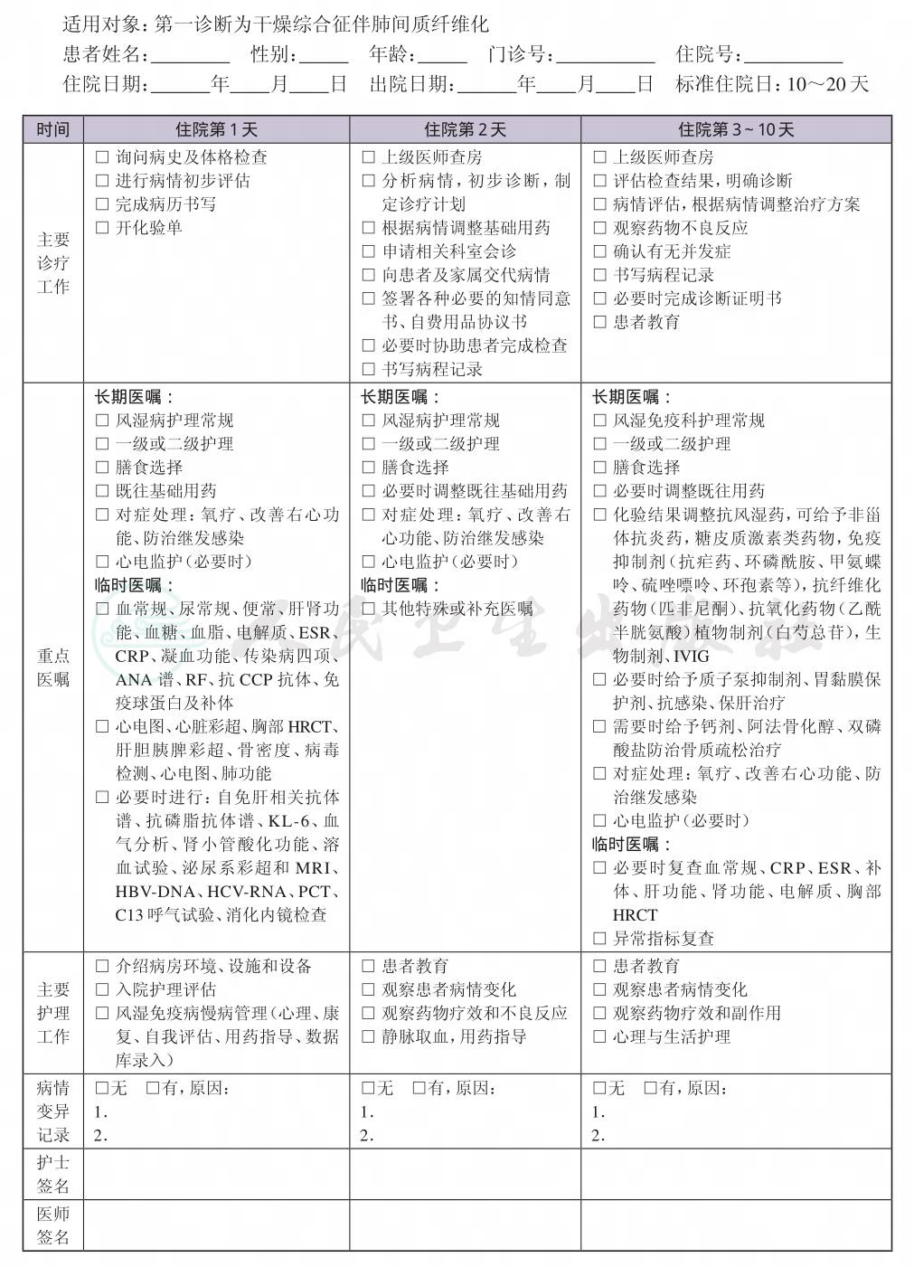 二、 干燥综合征伴肺间质纤维化临床路径表单