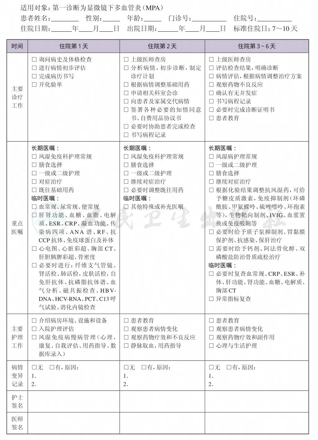 二、 显微镜下多血管炎(MPA)临床路径表单