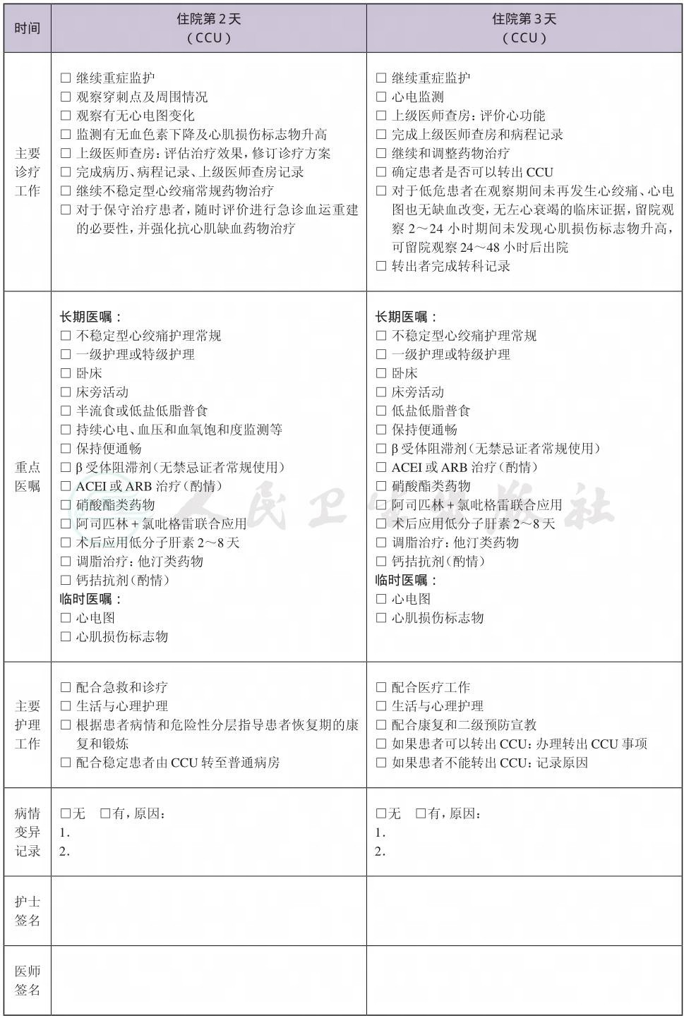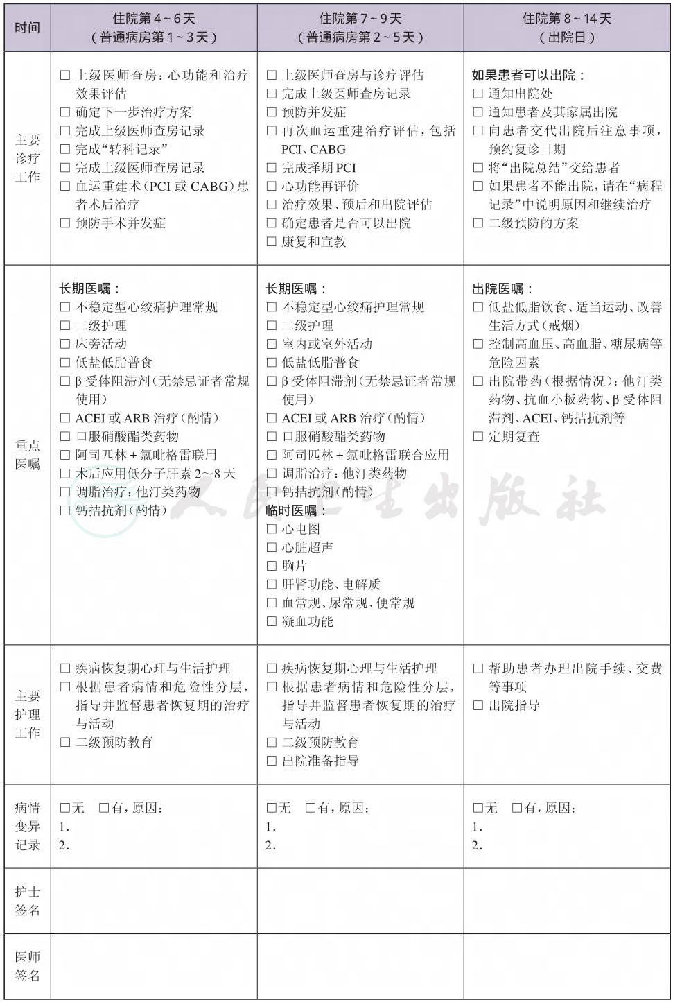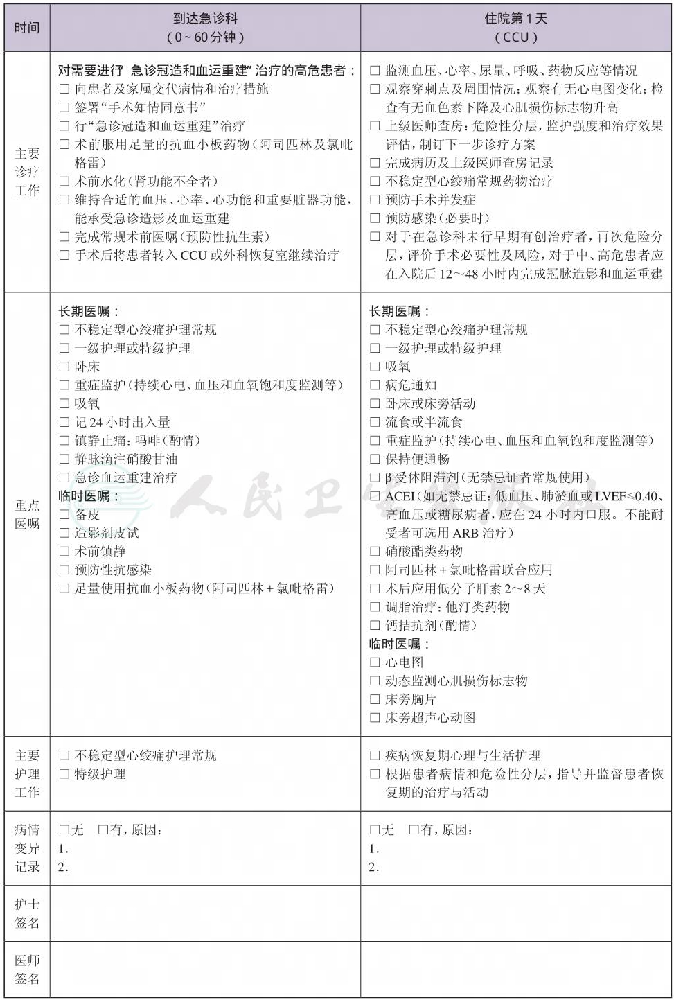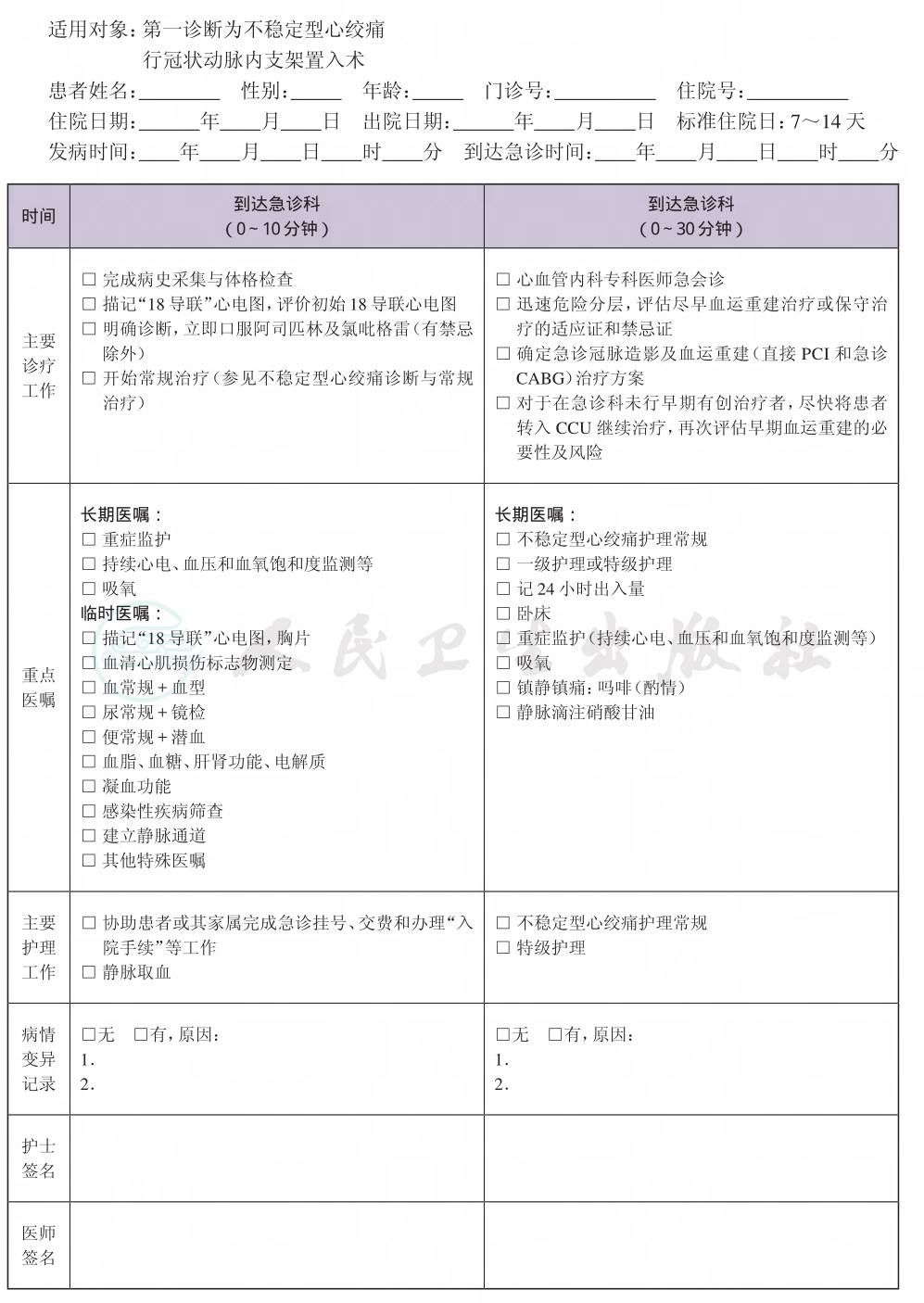 二、 不稳定型心绞痛介入治疗临床路径表单