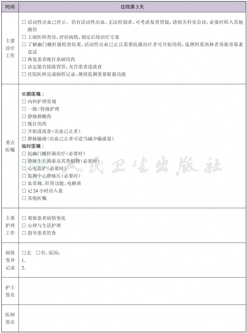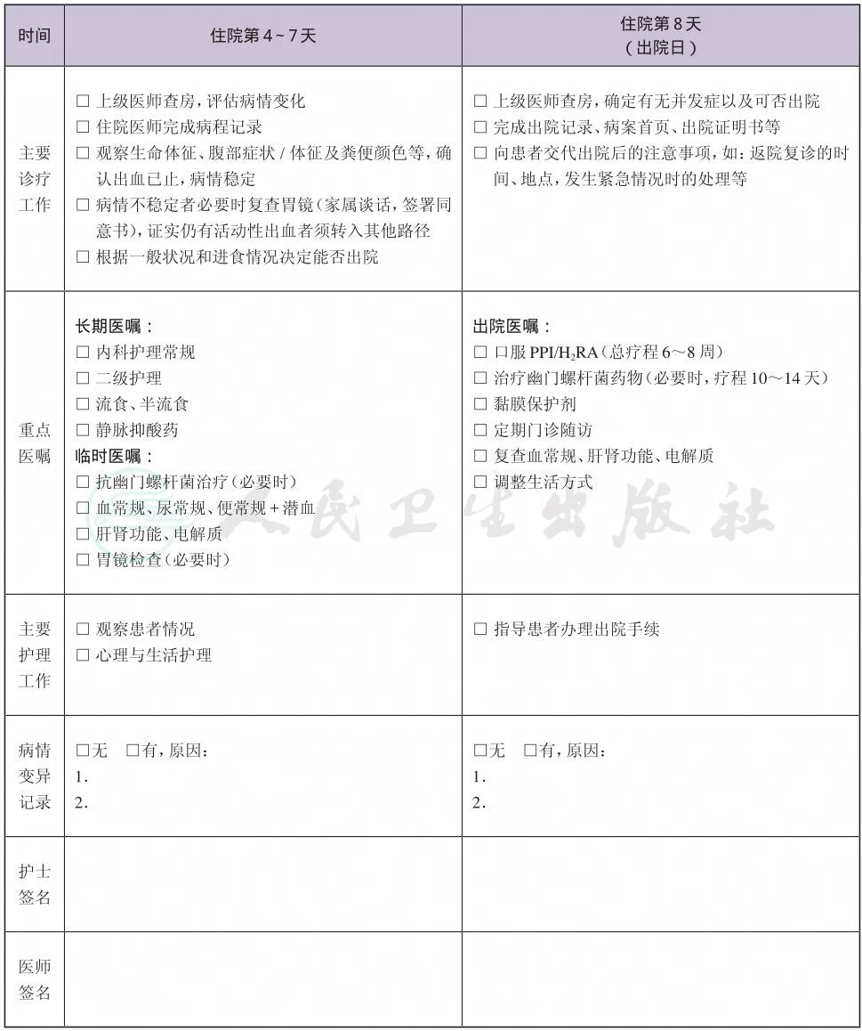 3.因消化道出血而诱发其他系统病变,例如吸入性肺炎、肾衰竭,缺血性心脏病等,建议进入相关疾病的临床路径。