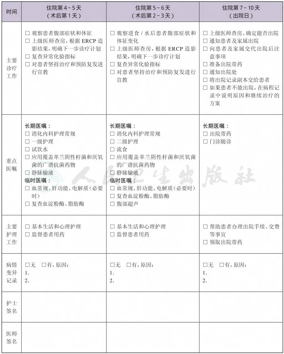 (八) 内镜治疗(ERCP)日为入院第3~4天