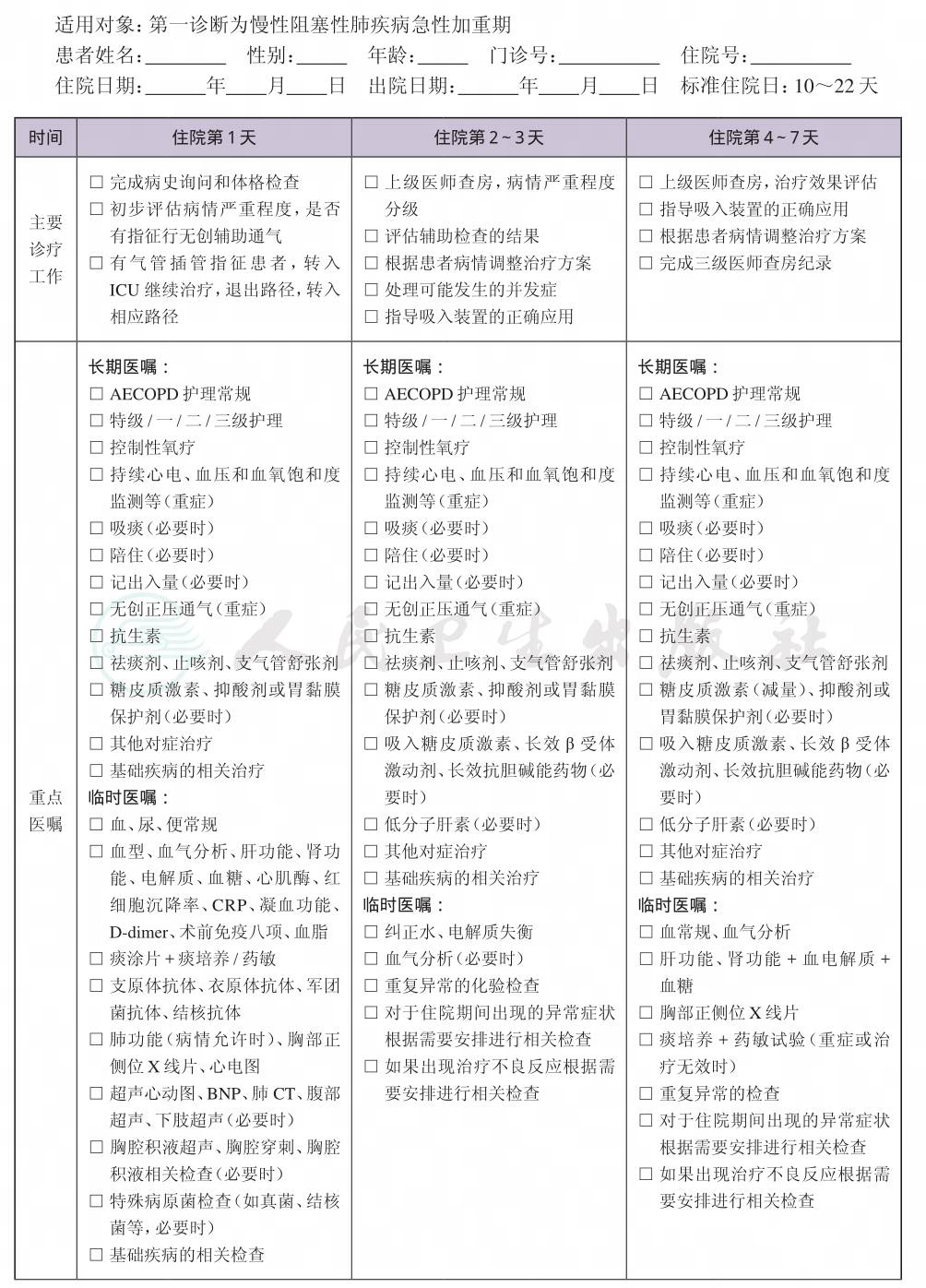 一、 慢性阻塞性肺疾病临床路径标准住院流程