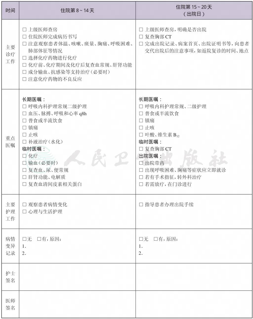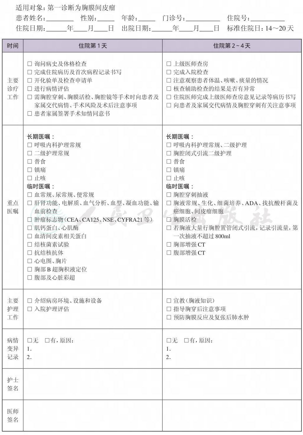 (2) 肝肾功能、电解质、血气分析、凝血功能、输血前检查(乙肝、丙肝、梅毒、艾滋病等)、血清间皮素相关蛋白(SMRP)、癌胚抗原(CEA)。