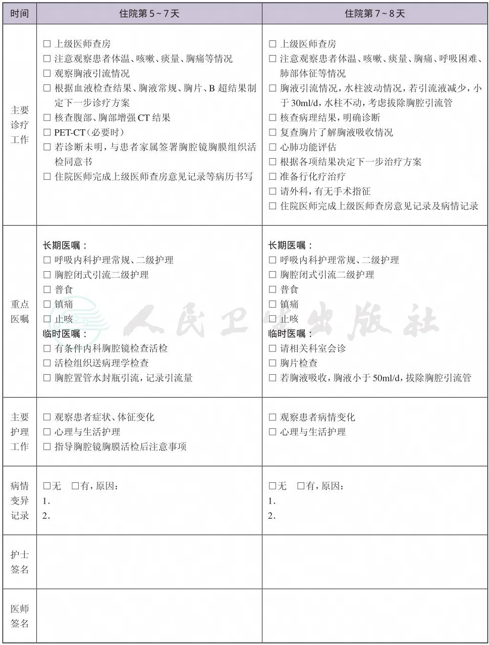 (4) 有胸腔积液时,行胸膜活检,送病理组织学检查。