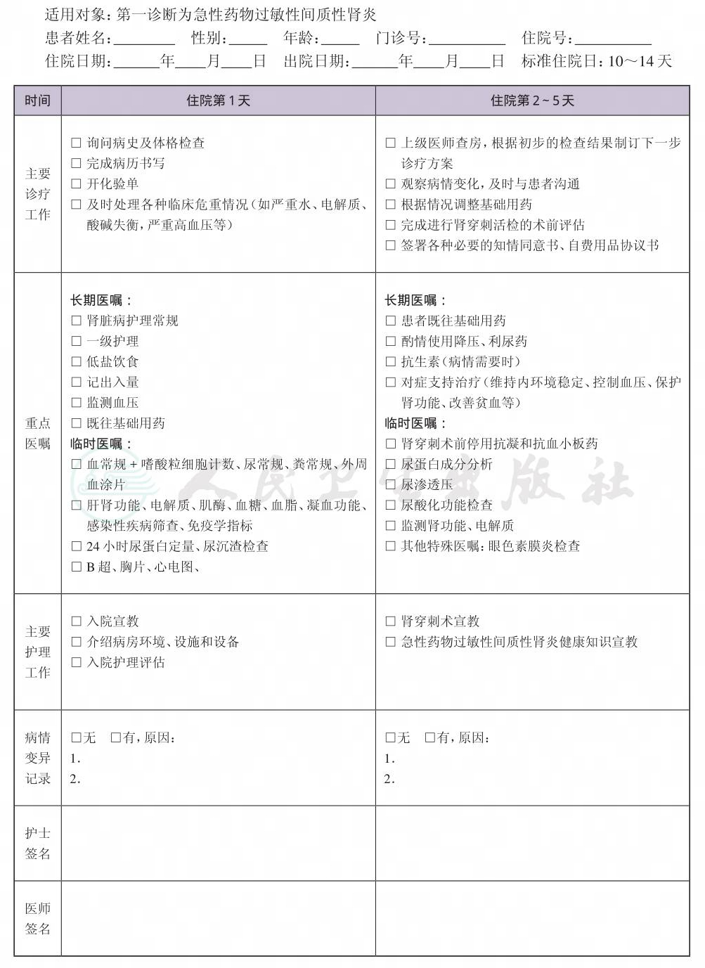 二、 急性药物过敏性间质性肾炎临床路径表单