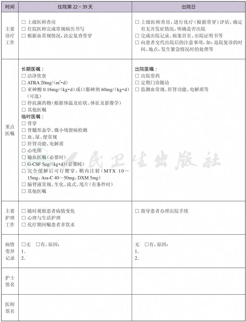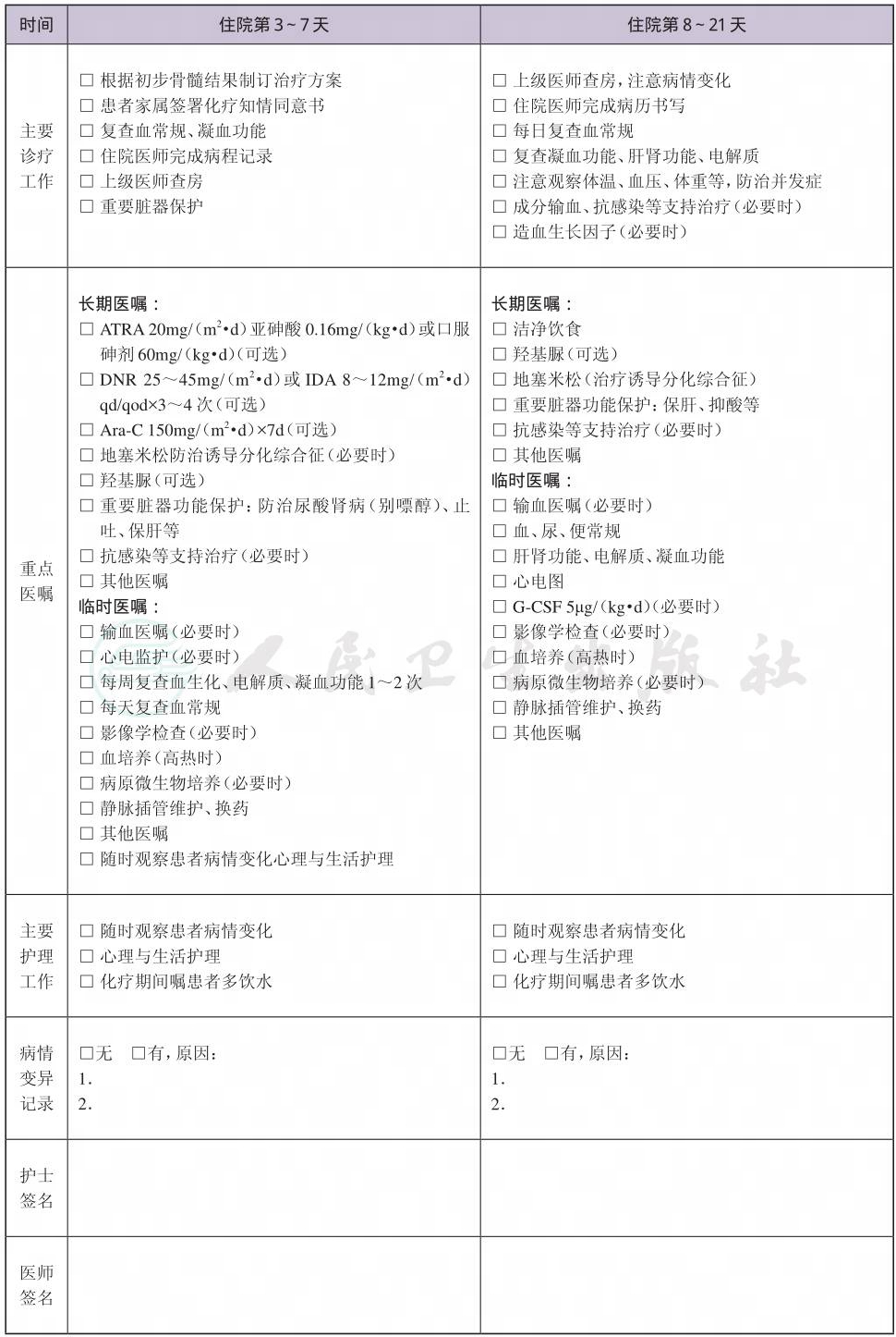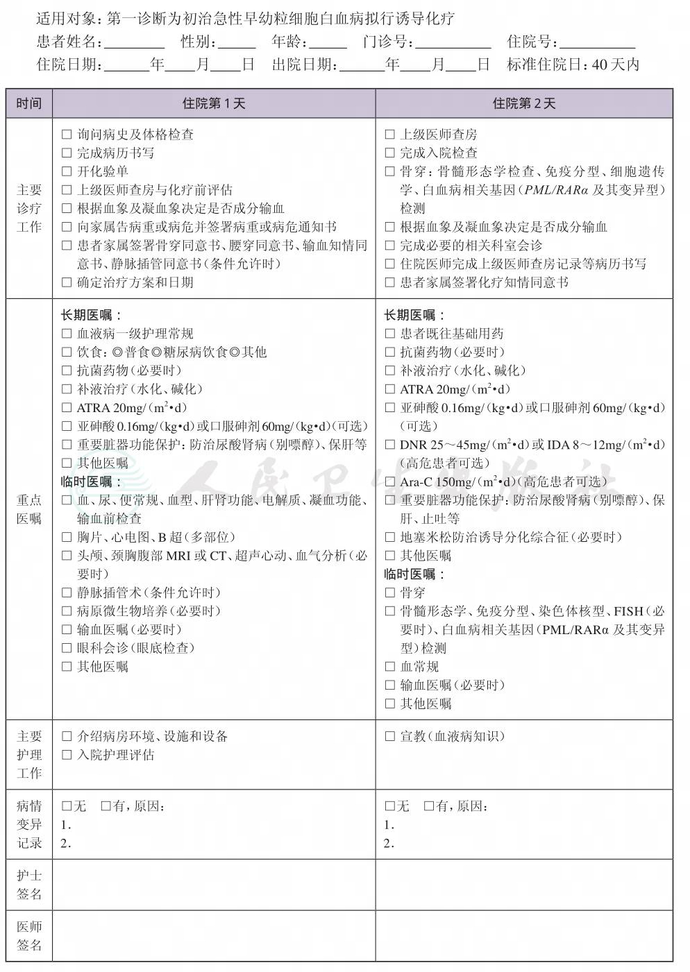 二、 成人初治APL临床路径表单
