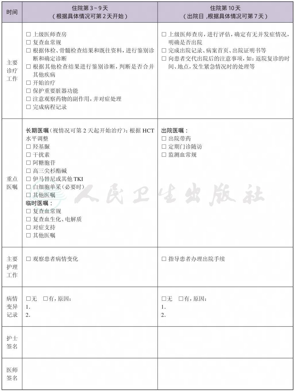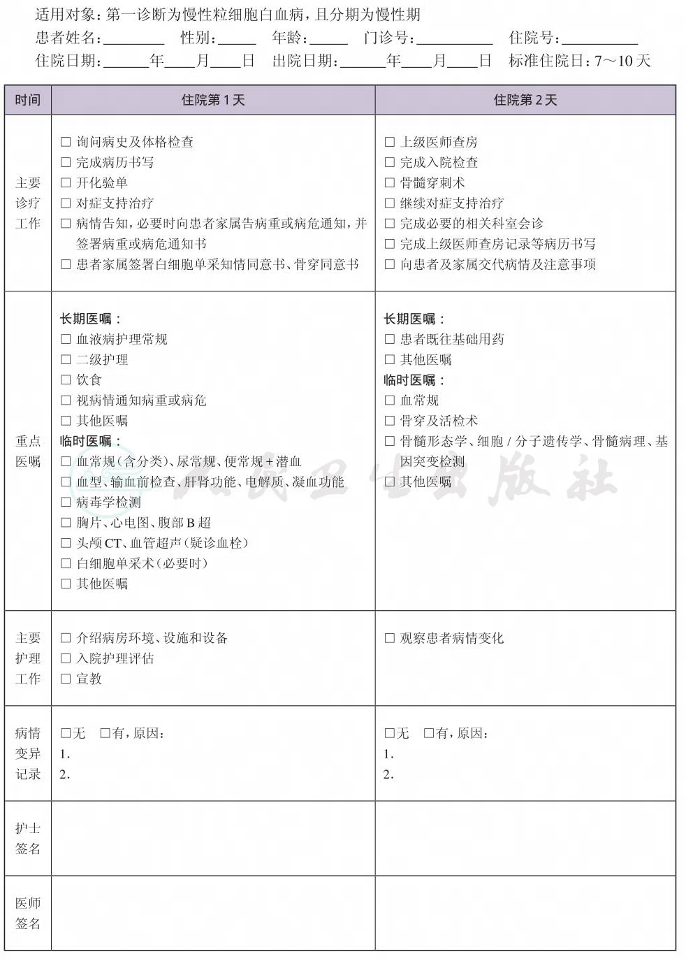二、 慢性粒细胞白血病(慢性期)临床路径表单
