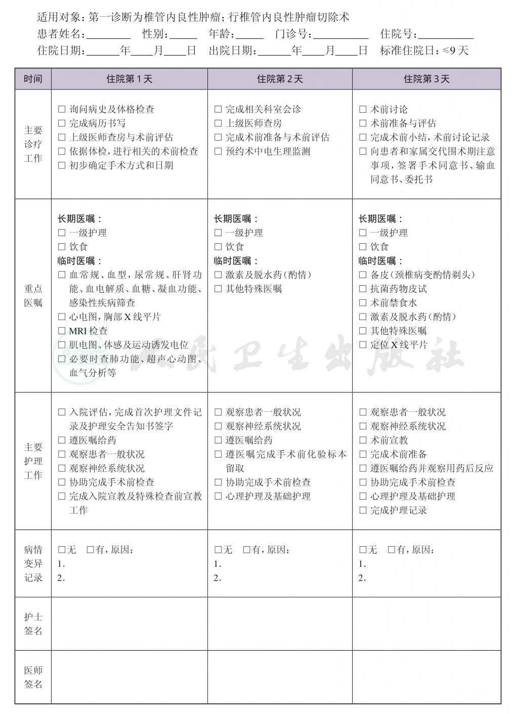 一、 椎管内良性肿瘤临床路径标准住院流程