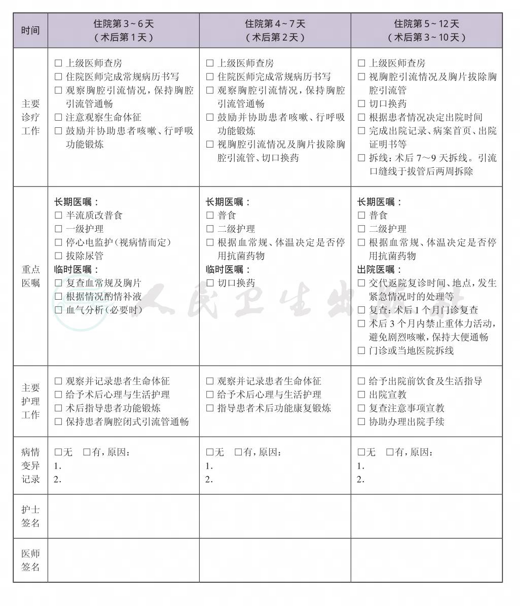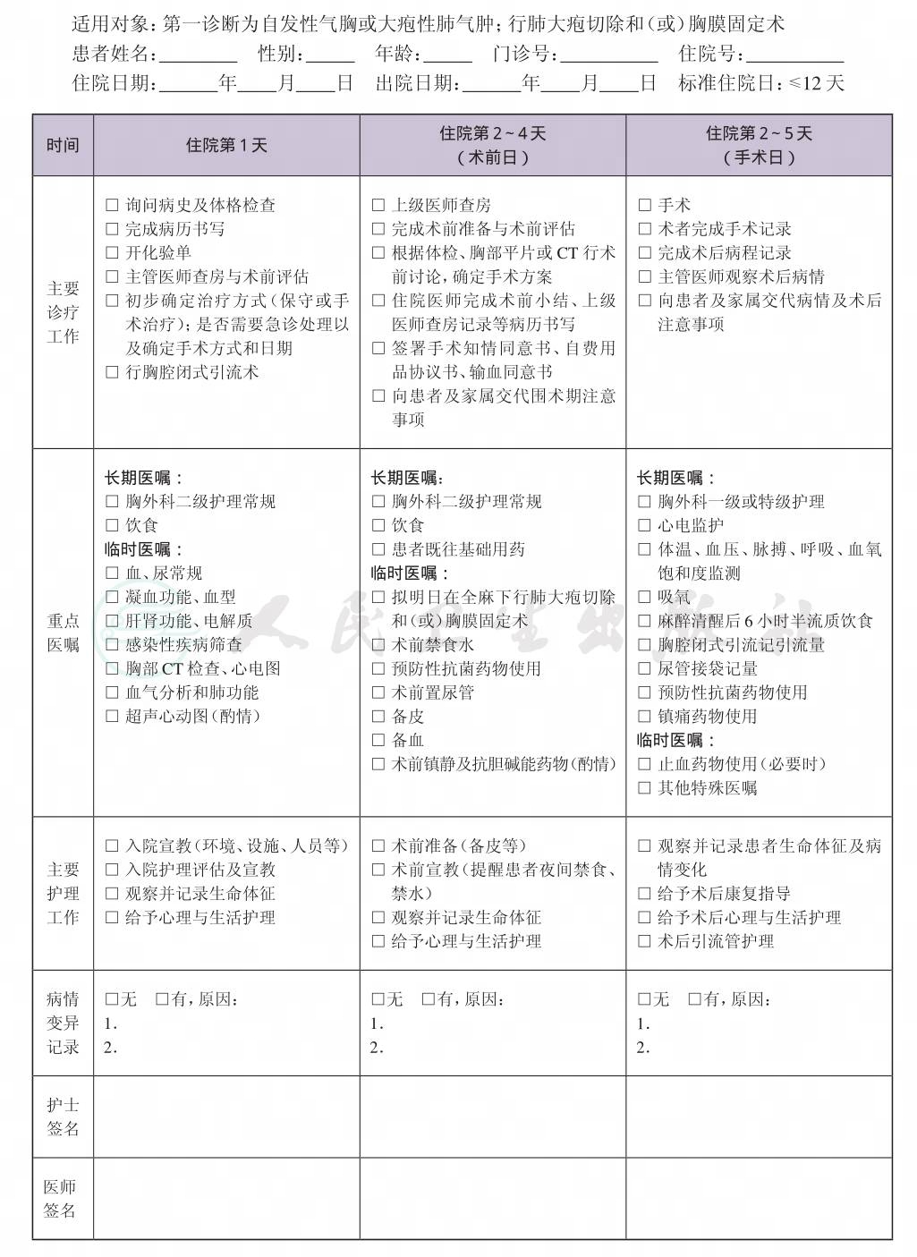 二、 肺大疱外科治疗临床路径表单
