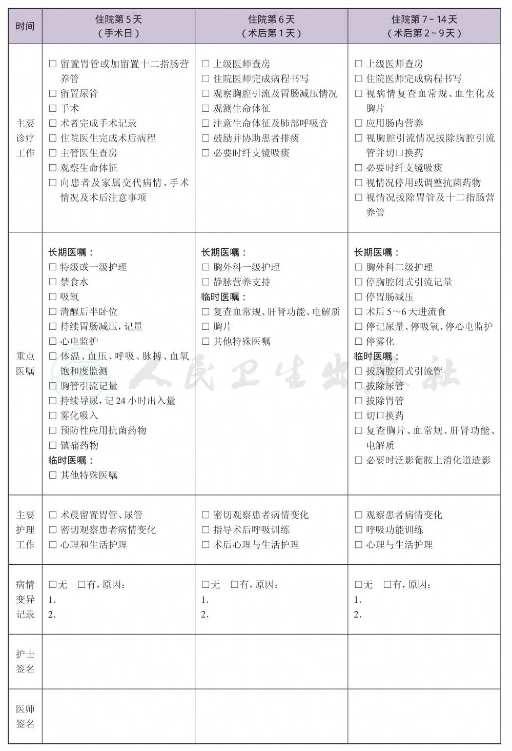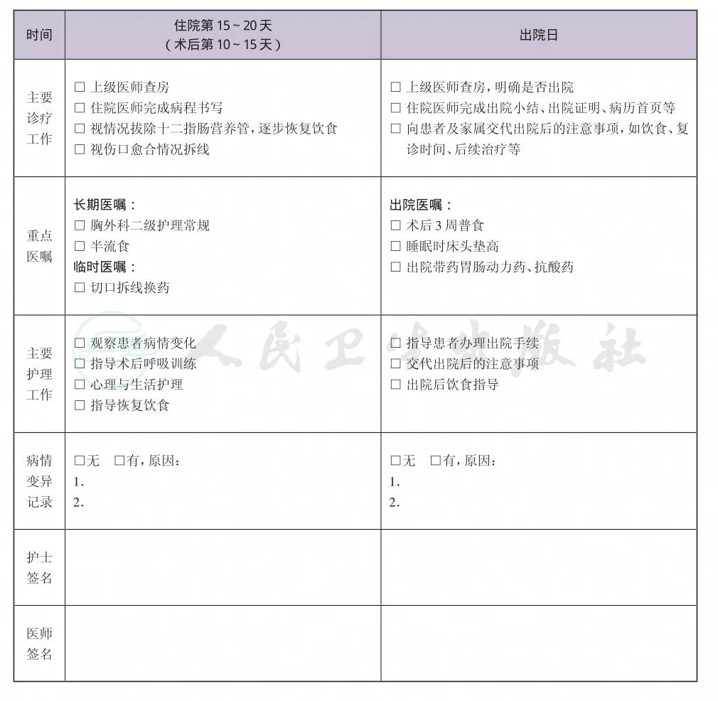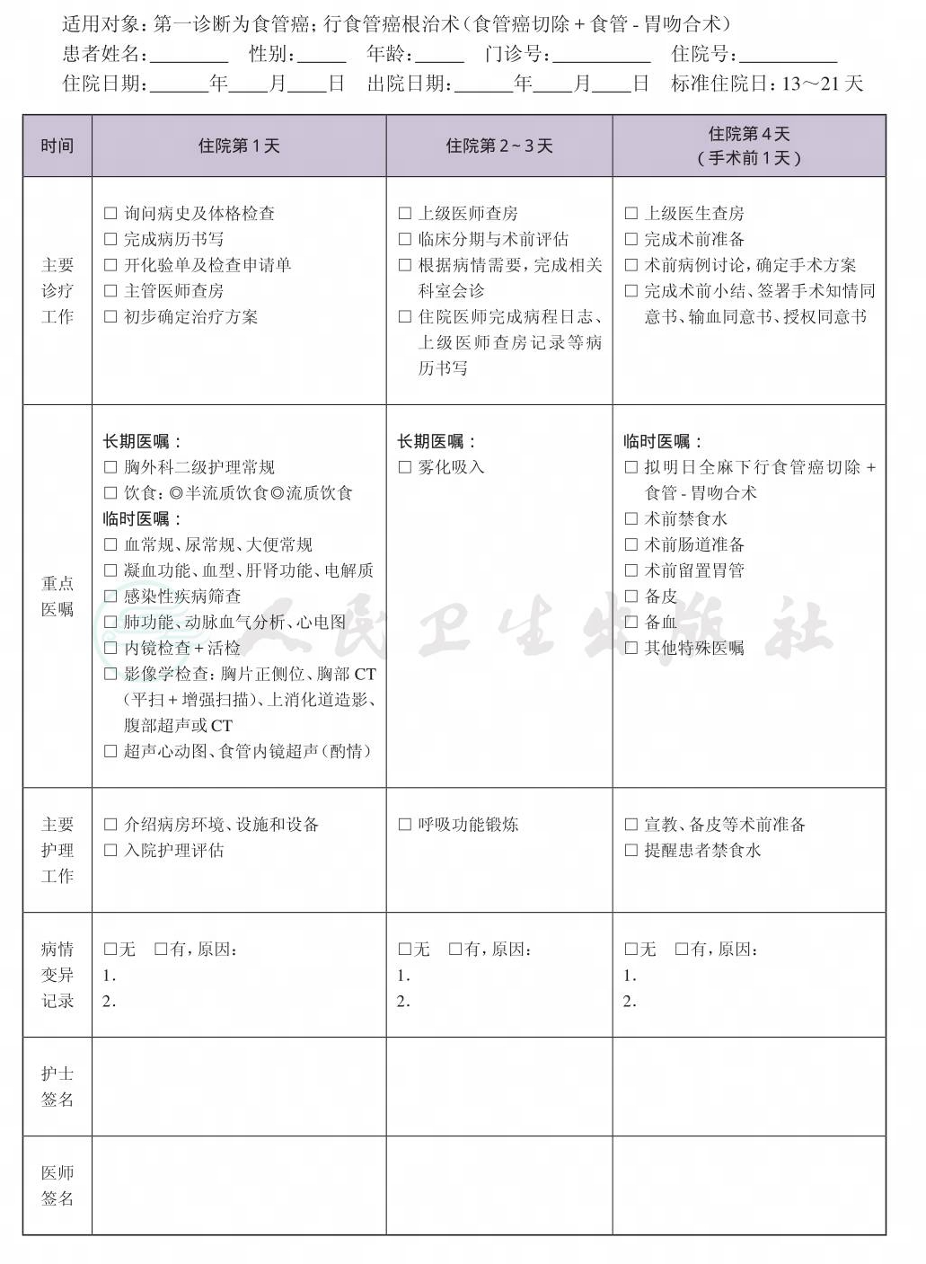 二、 食管癌临床路径表单
