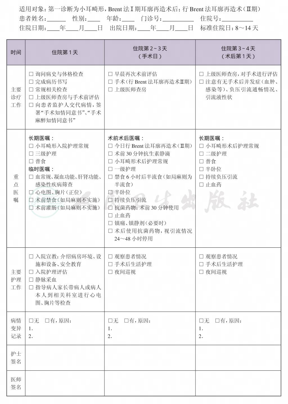 二、 小耳畸形临床路径(Brent法耳廓再造术Ⅱ期)表单