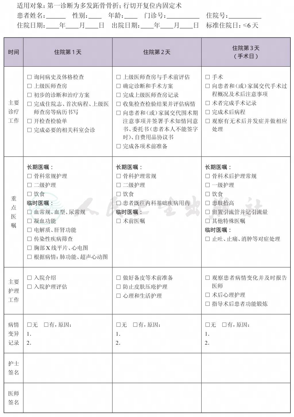 二、 多发跖骨骨折临床路径表单