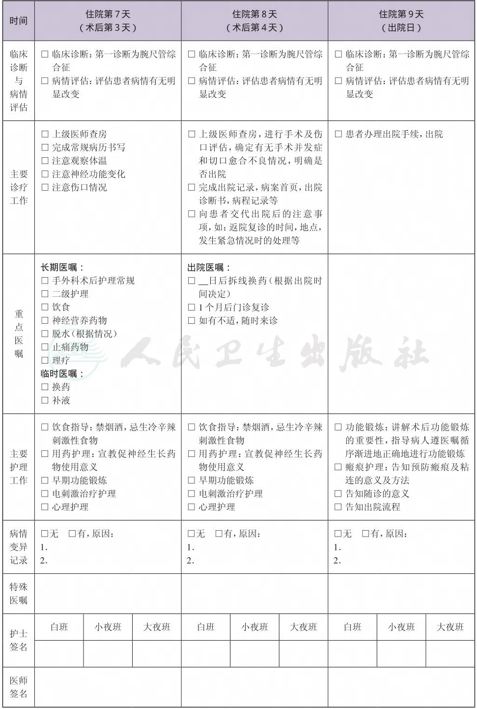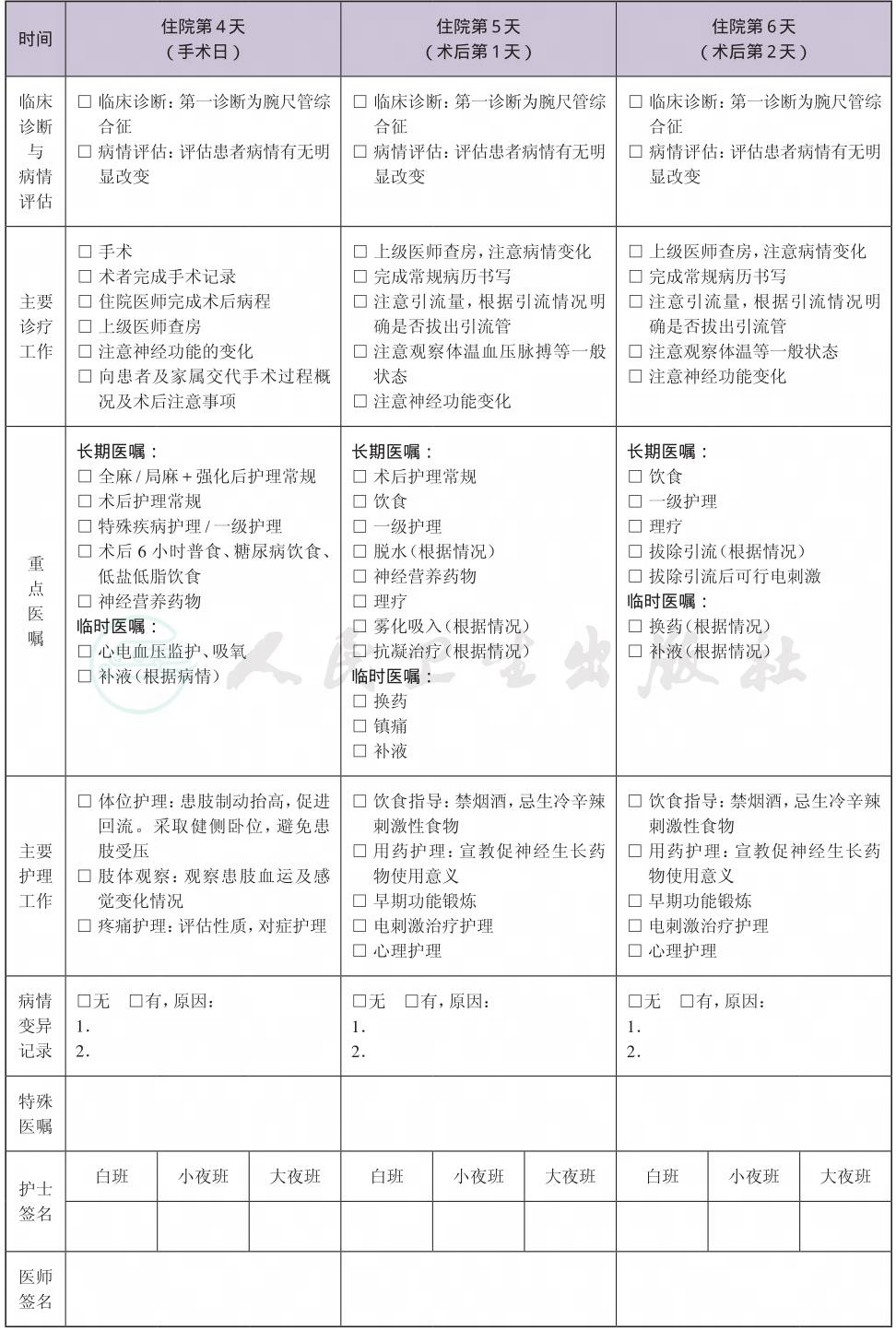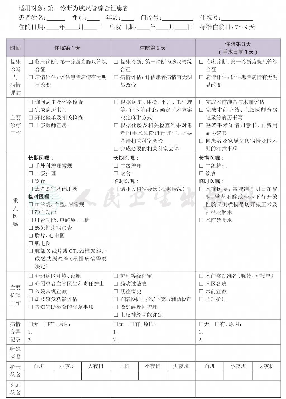 二、 腕尺管综合征临床路径表单