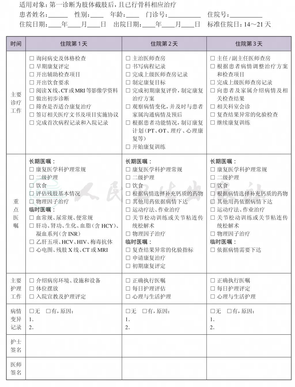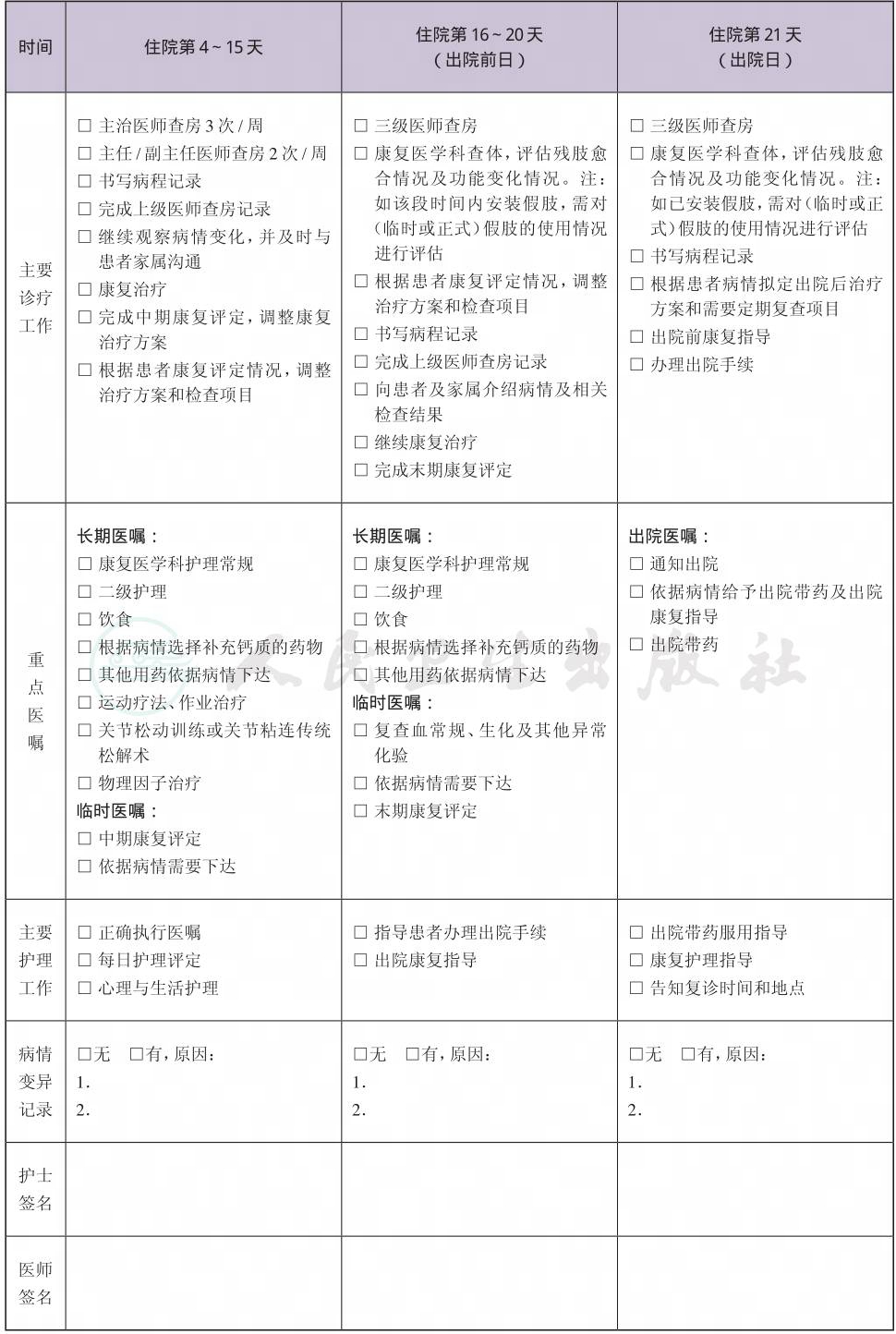 2.住院期间出现残肢刀口愈合不良、关节挛缩、骨化性肌炎等或严重并发症,需要进一步诊治或转科治疗,需退出路径。