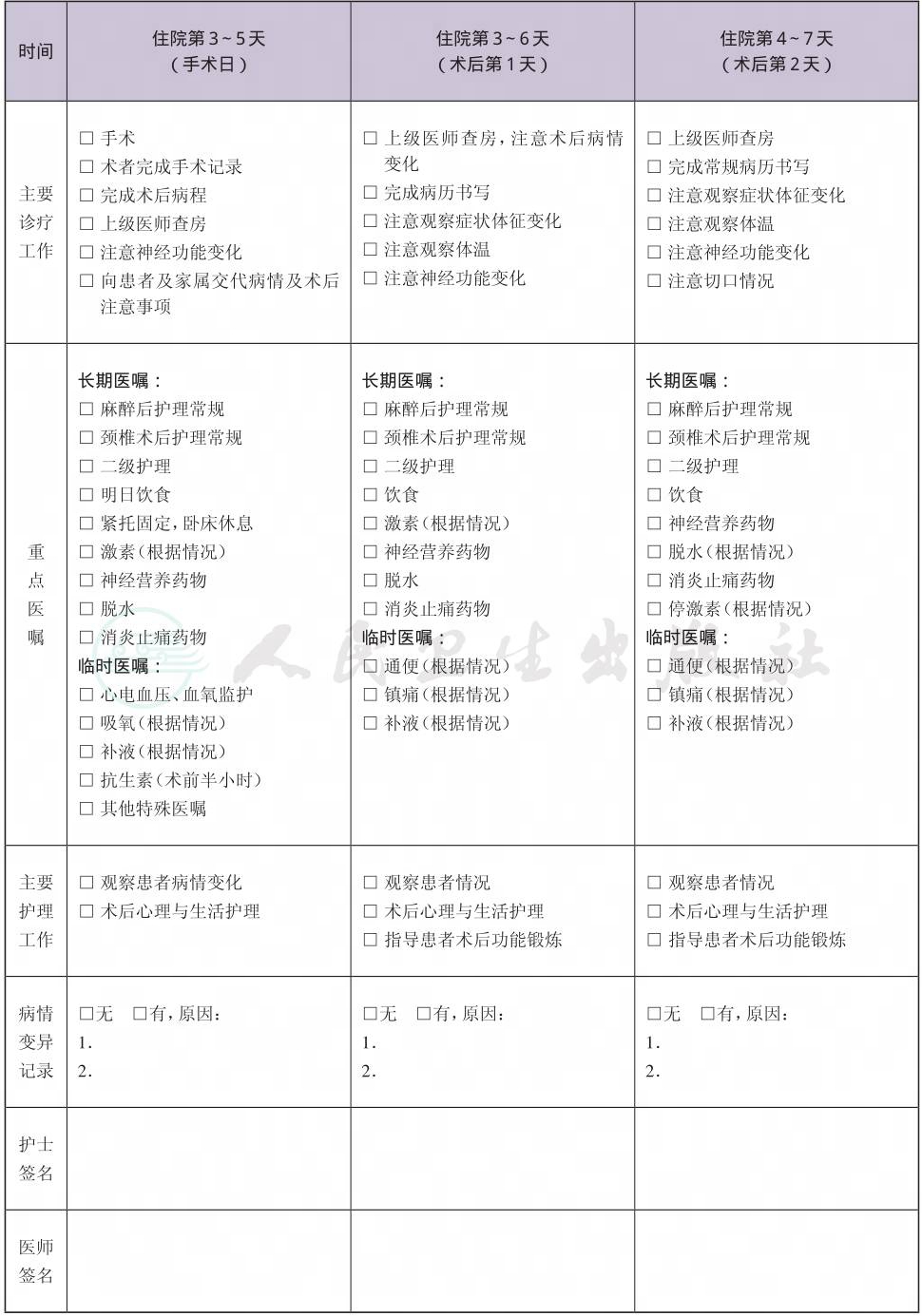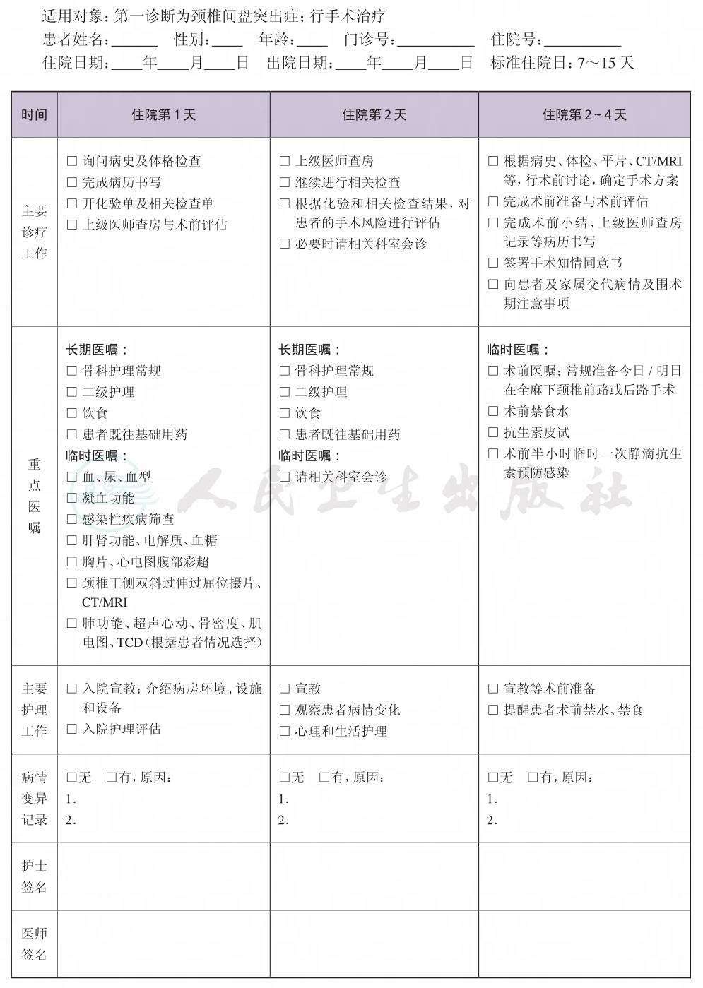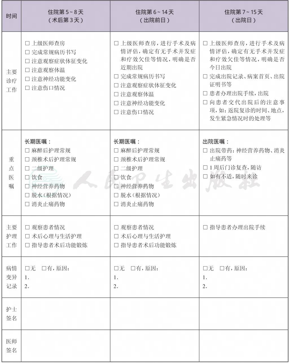 二、 颈椎间盘突出症手术临床路径表单
