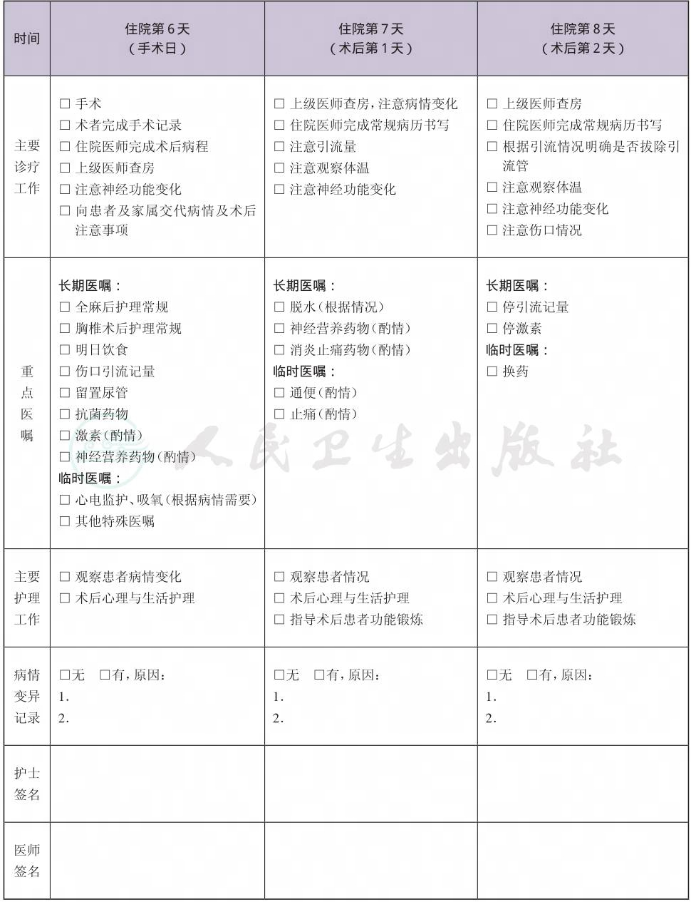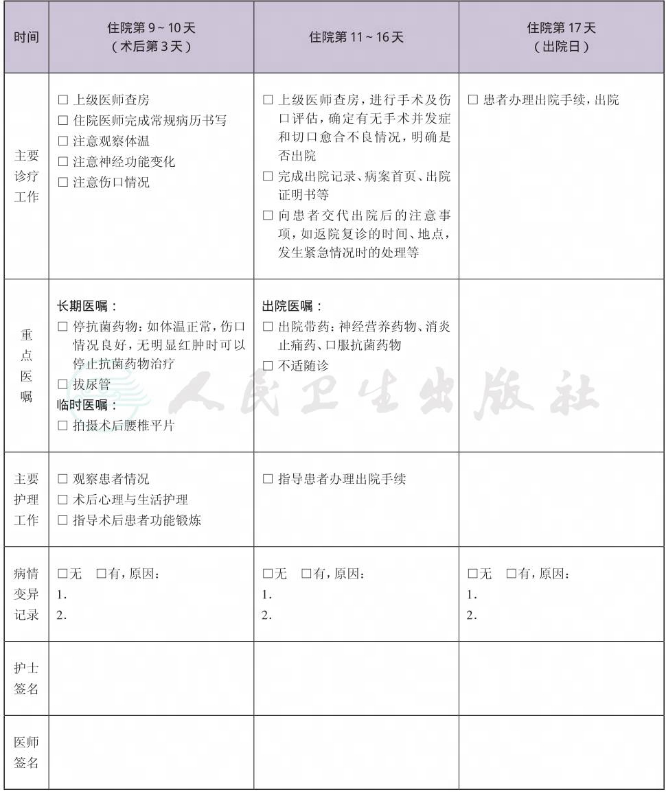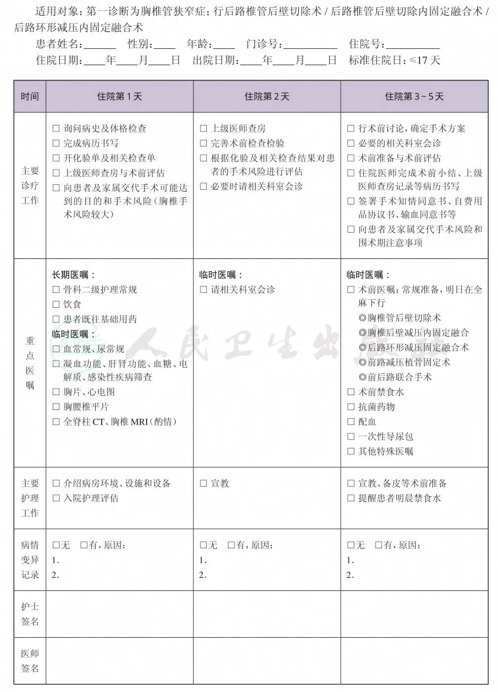 二、 胸椎管狭窄症临床路径表单