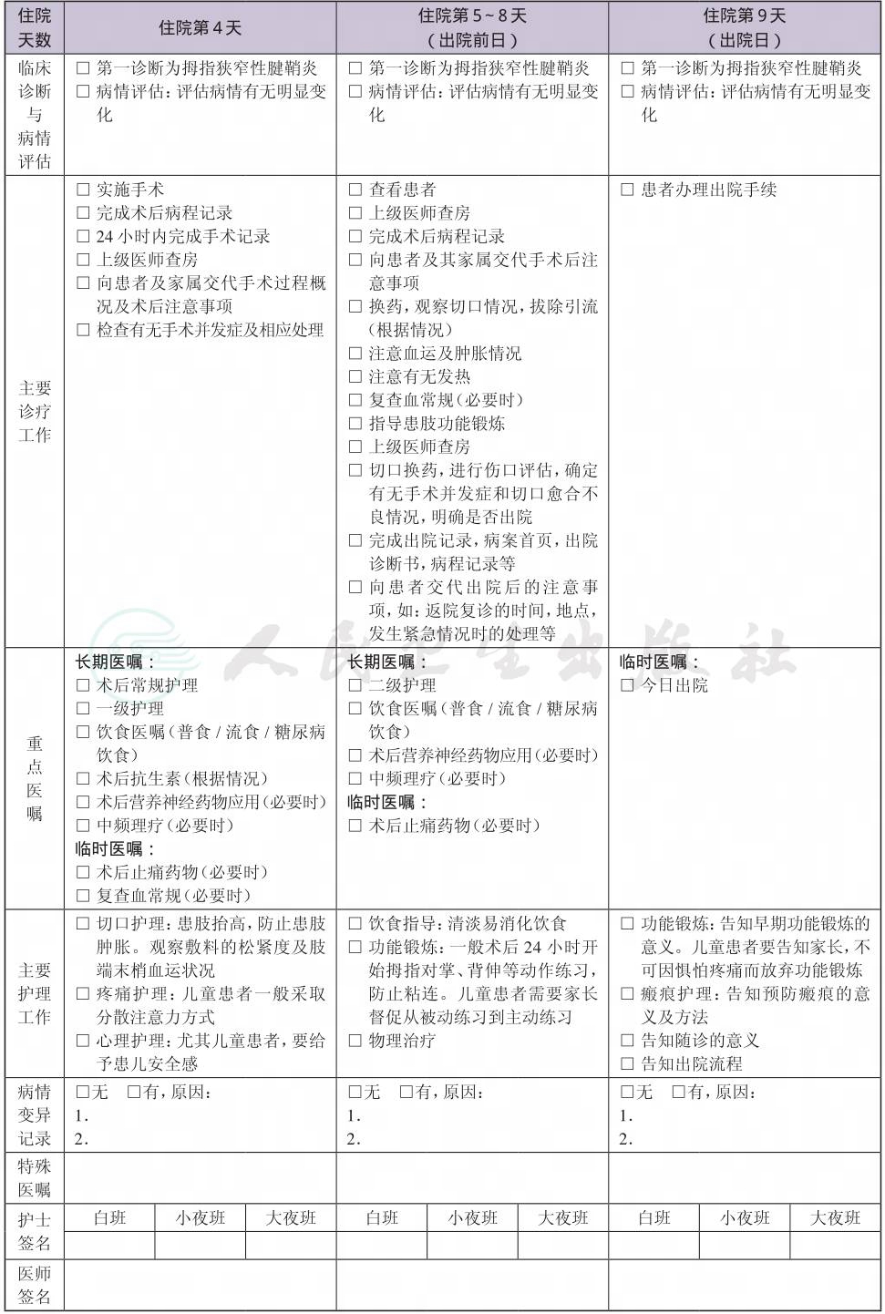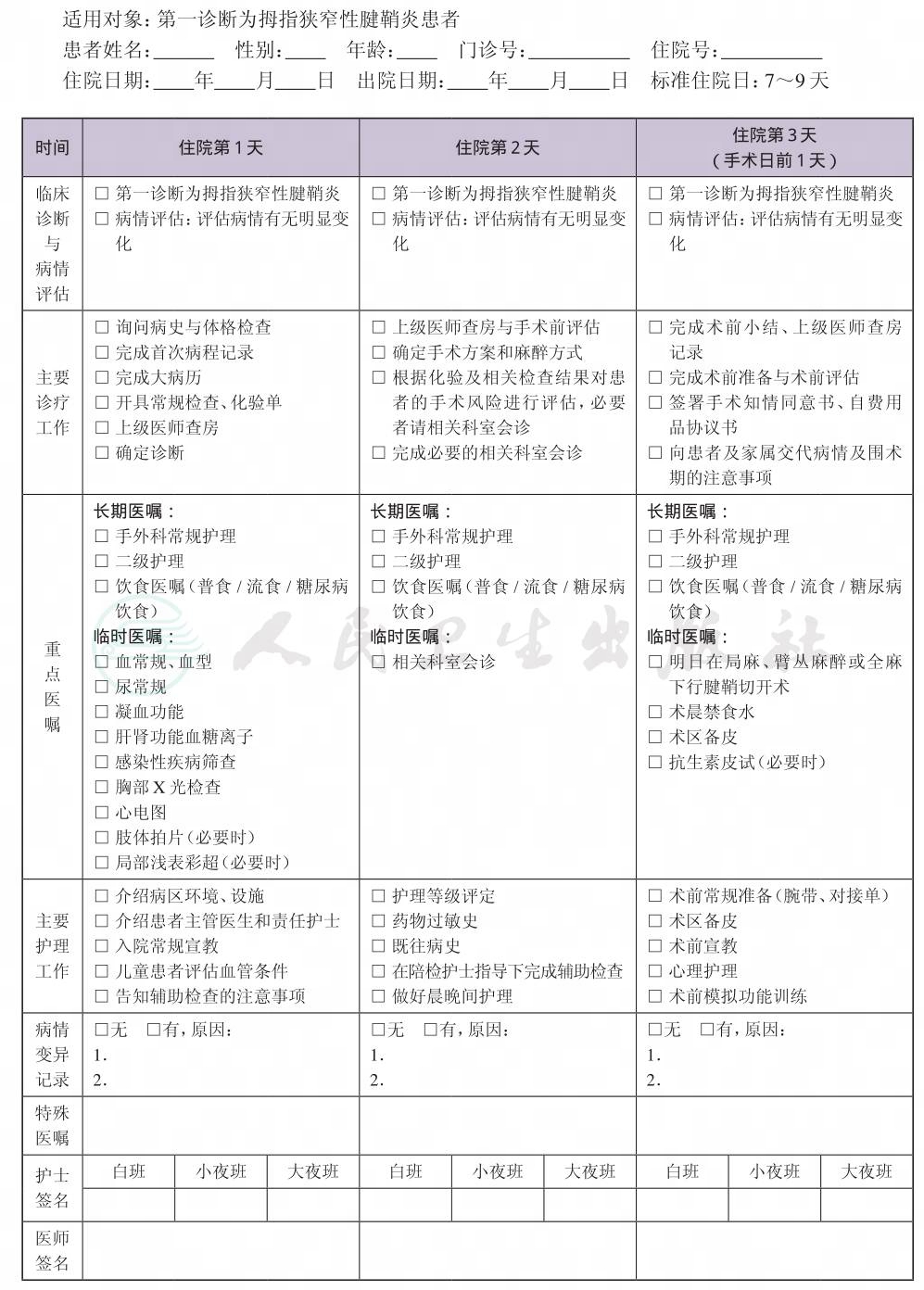 二、 拇指狭窄性腱鞘炎临床路径表单