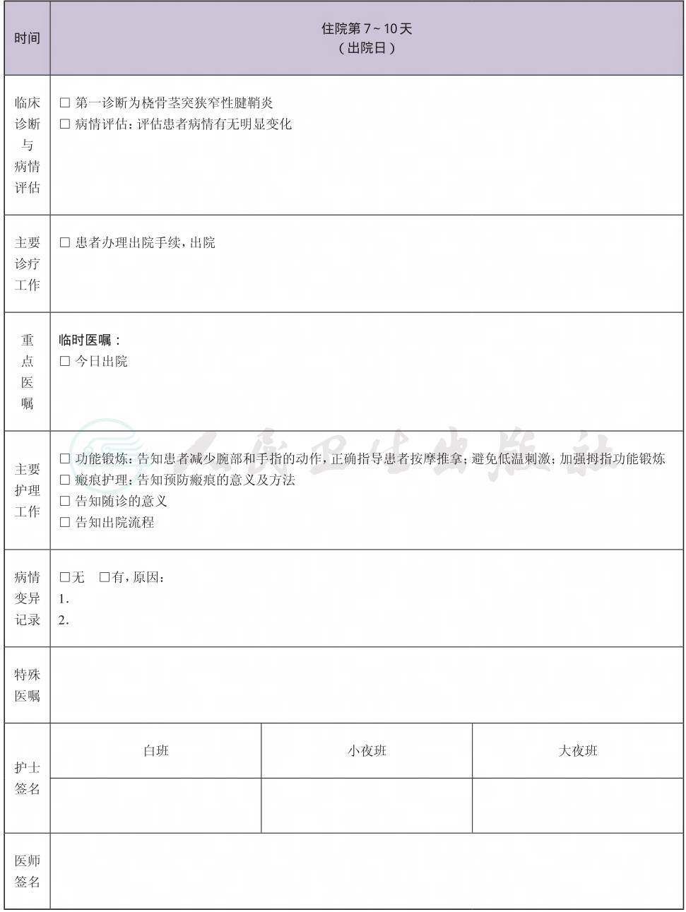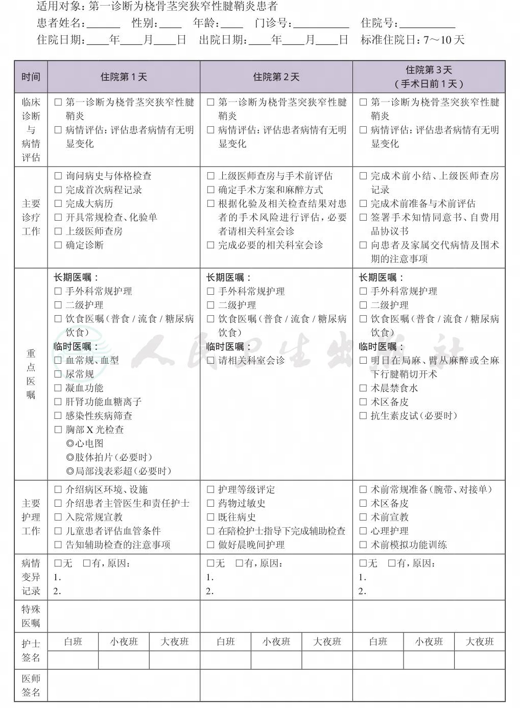 二、 桡骨茎突狭窄性腱鞘炎临床路径表单