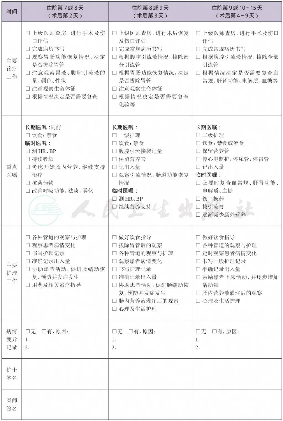 (八) 手术日为入院第5~6天