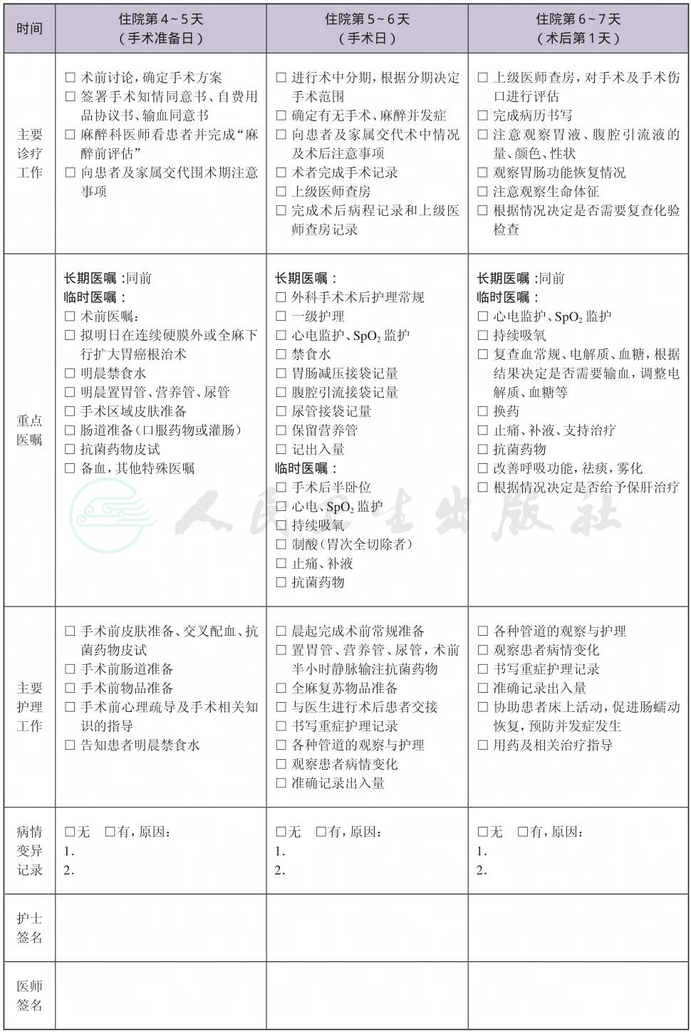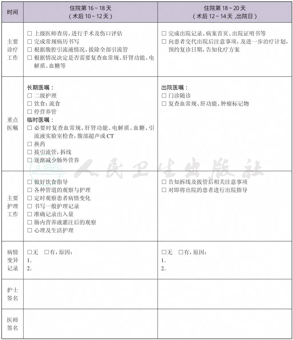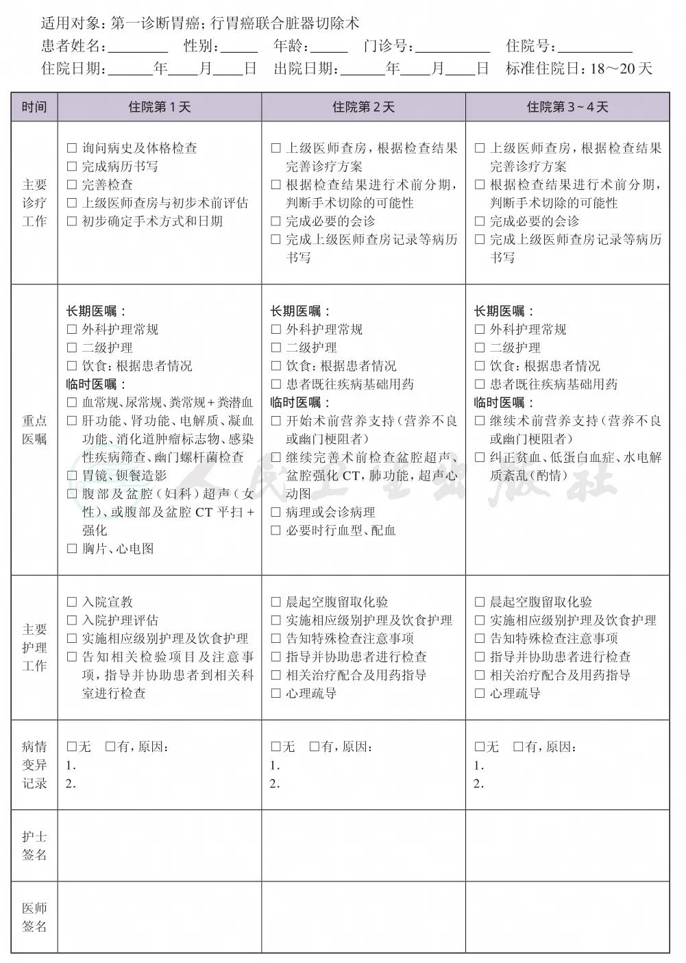 二、 胃癌联合脏器切除术临床路径表单