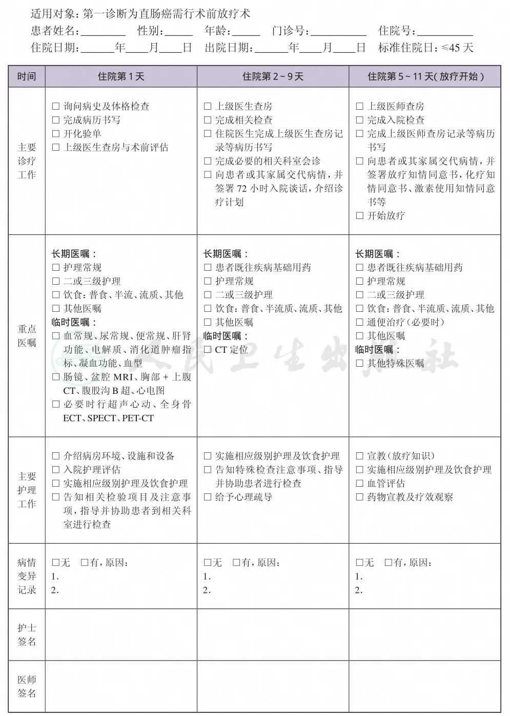 3.术前放疗结束时复查、评估发现仍无法手术,需行根治性放疗,退出此临床路径。