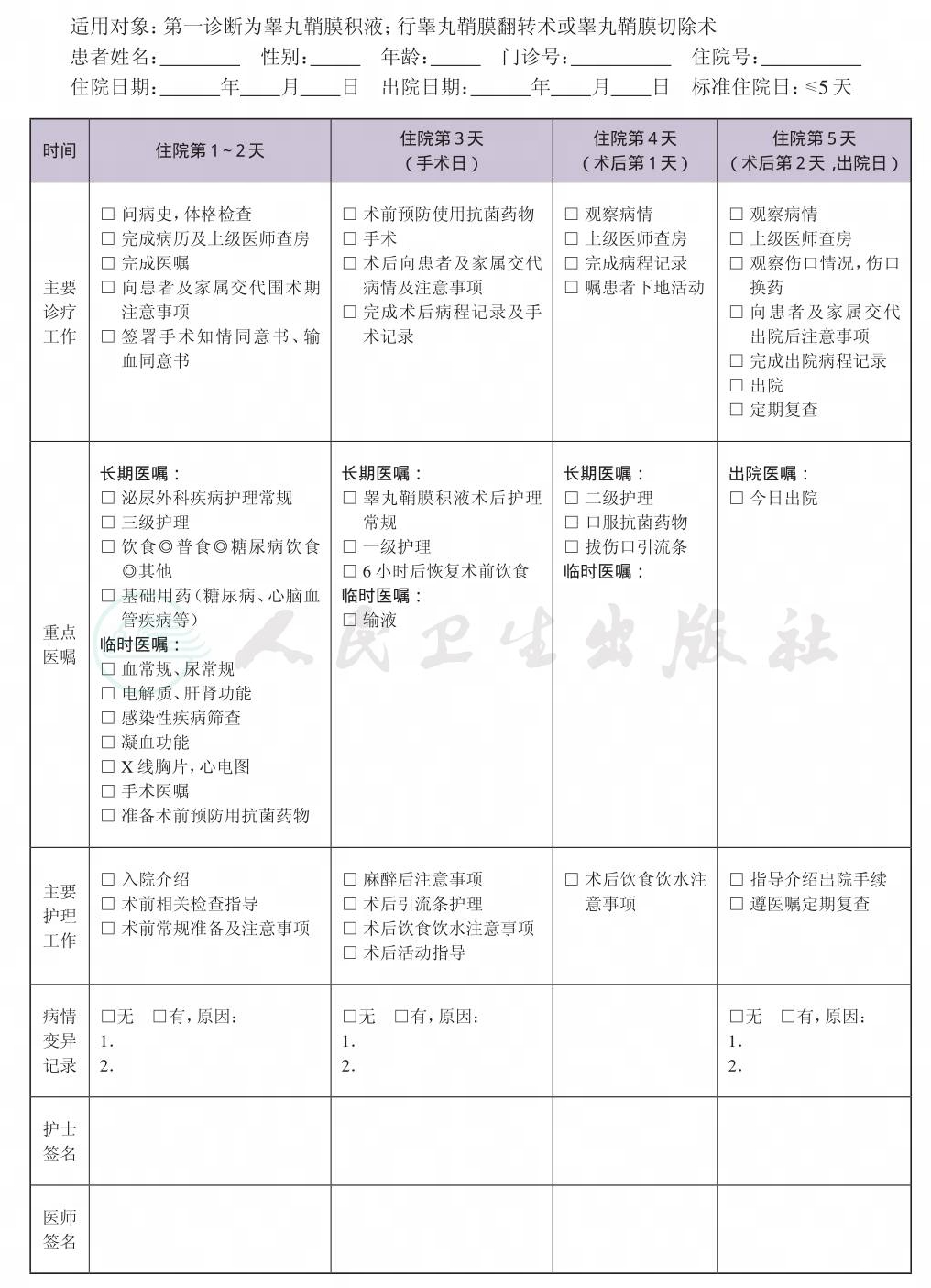 一、 睾丸鞘膜积液临床路径标准住院流程