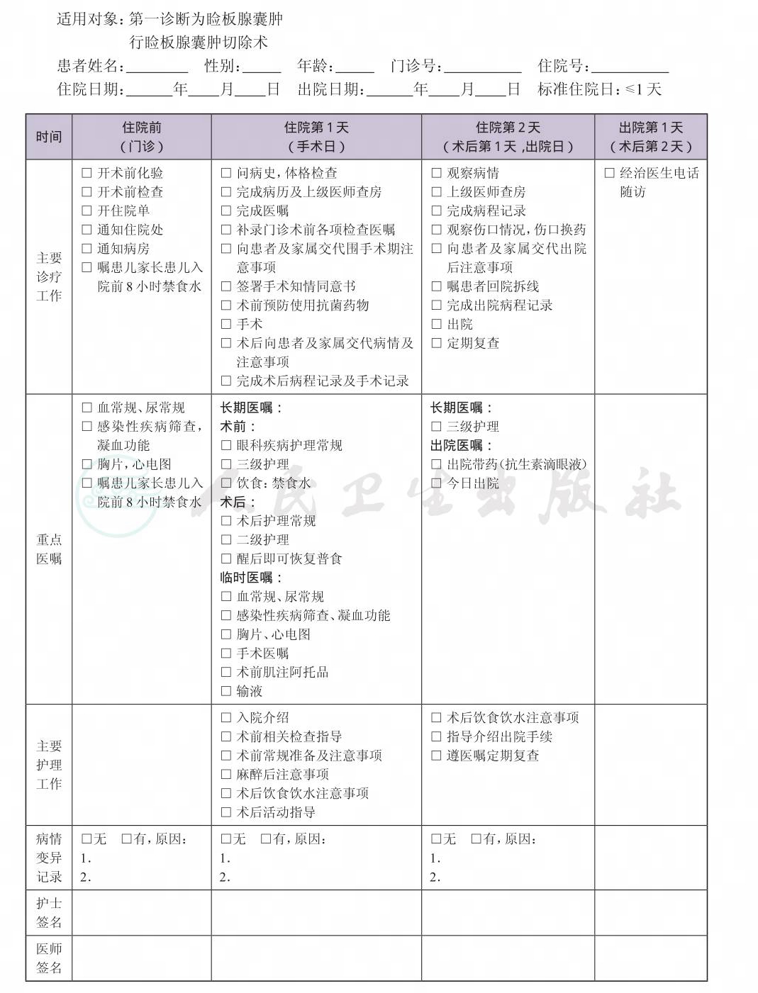一、 小儿睑板腺囊肿临床路径标准住院流程