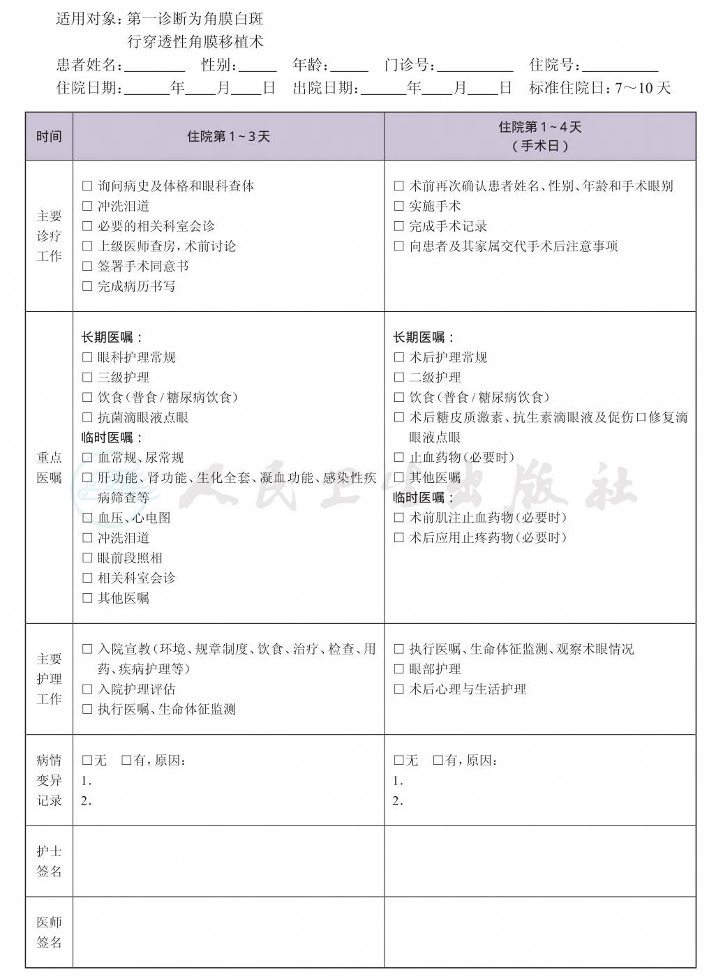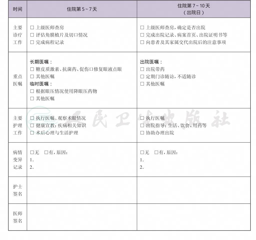二、 角膜白斑穿透性角膜移植术临床路径表单