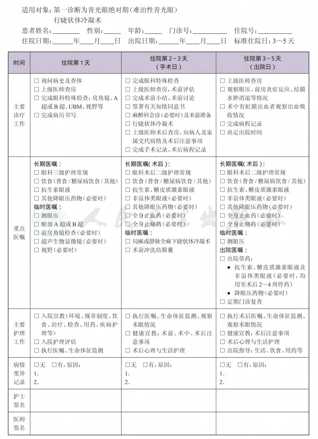 二、 难治性青光眼睫状体冷凝术临床路径表单