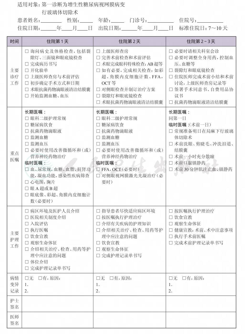 一、 增生性糖尿病视网膜病变临床路径标准住院流程
