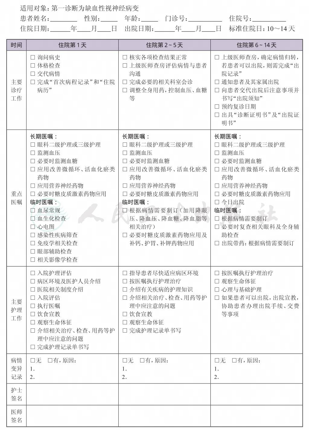 二、 缺血性视神经病变临床路径表单