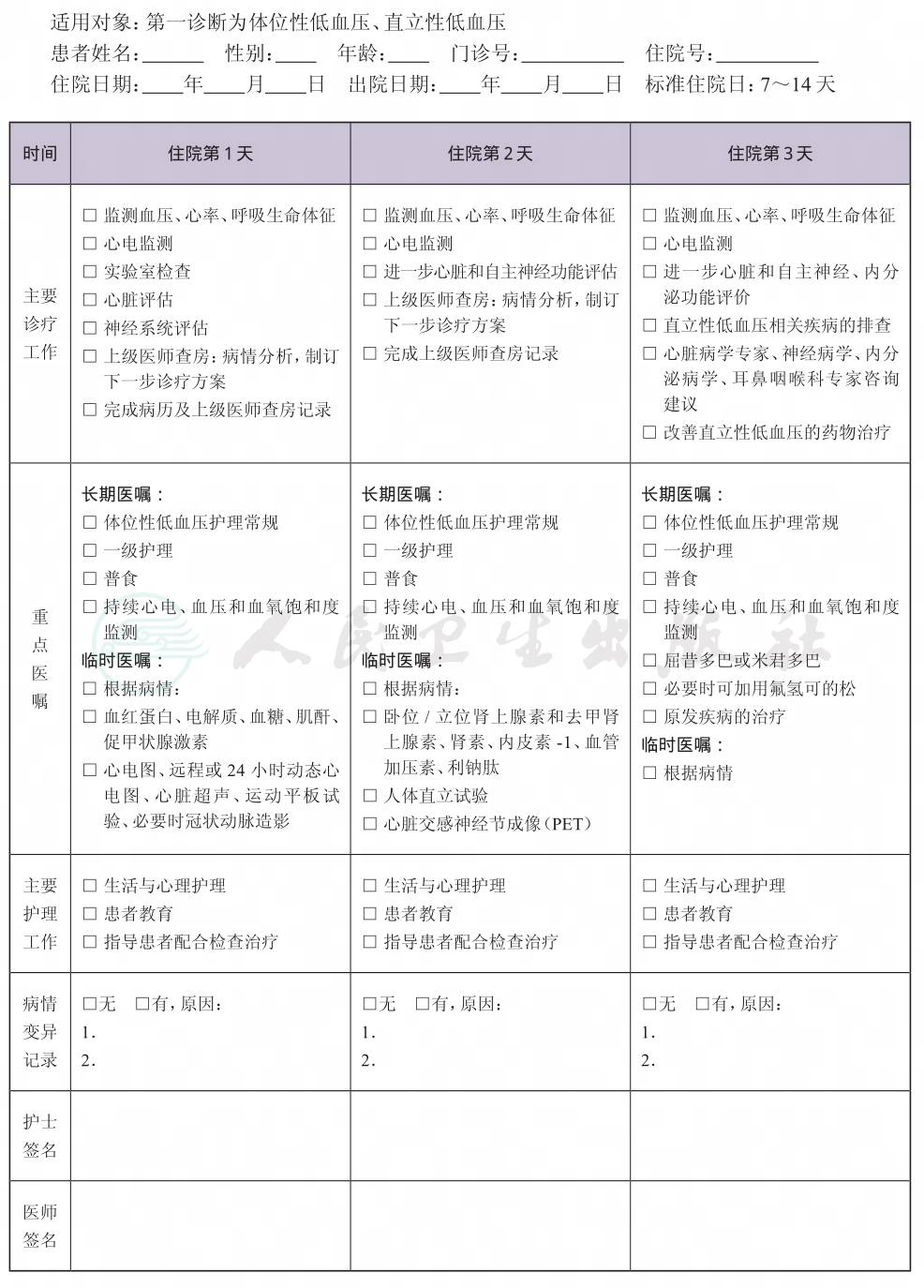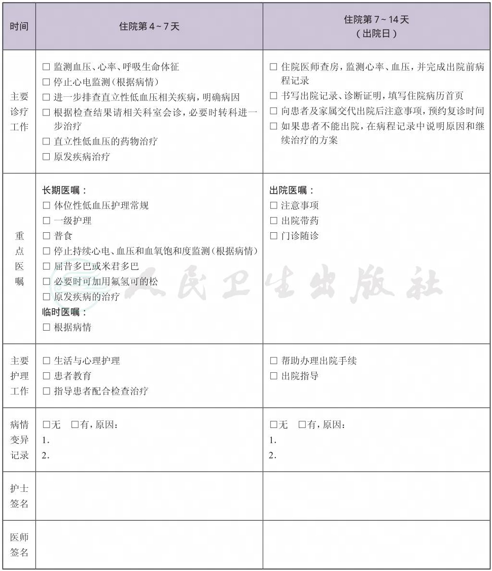 二、 低血压临床路径表单