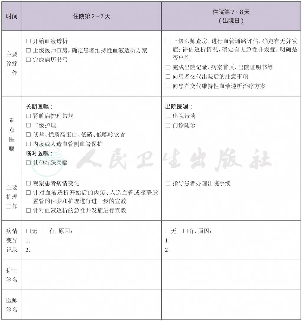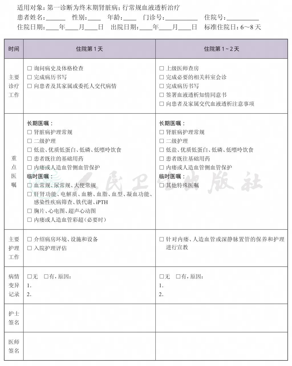 二、 终末期肾脏病常规血液透析治疗临床路径表单