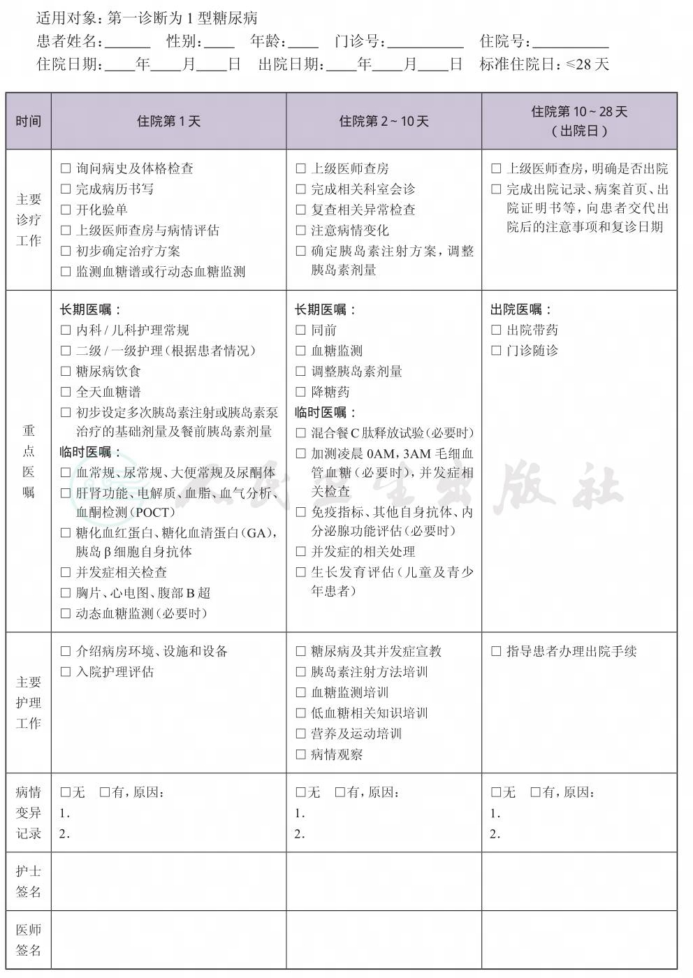 二、 1型糖尿病临床路径表单