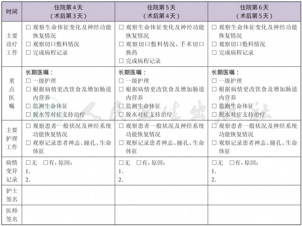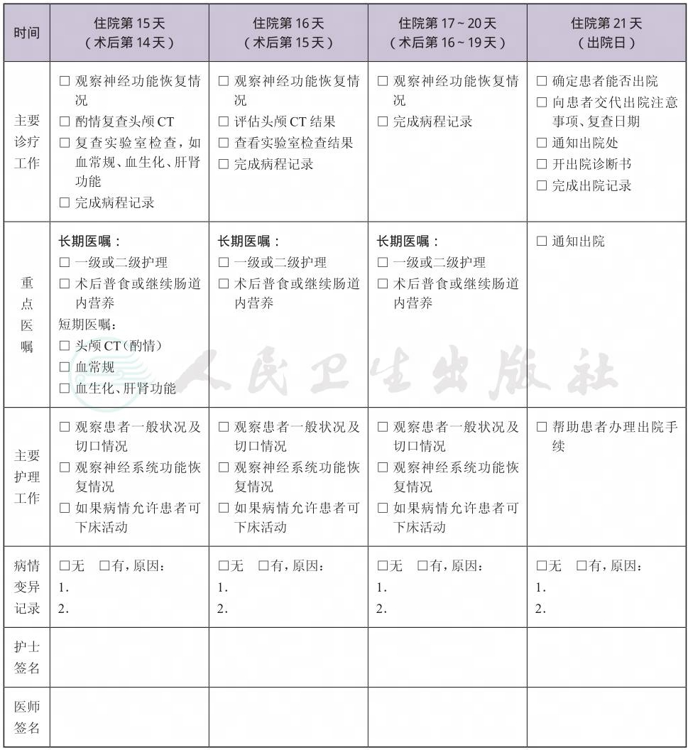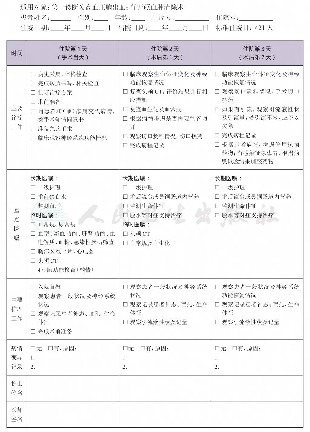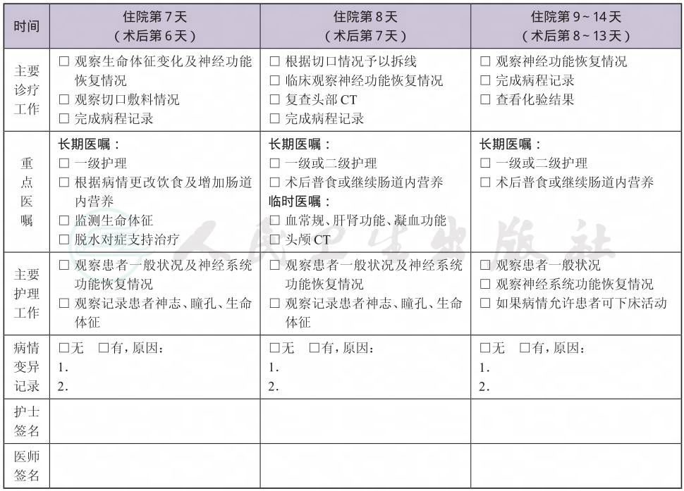 2.当患者合并其他疾病,但住院期间不需要特殊处理也不影响第一诊断的临床路径流程实施时,可以进入路径;脑疝晚期患者不进入此路径。